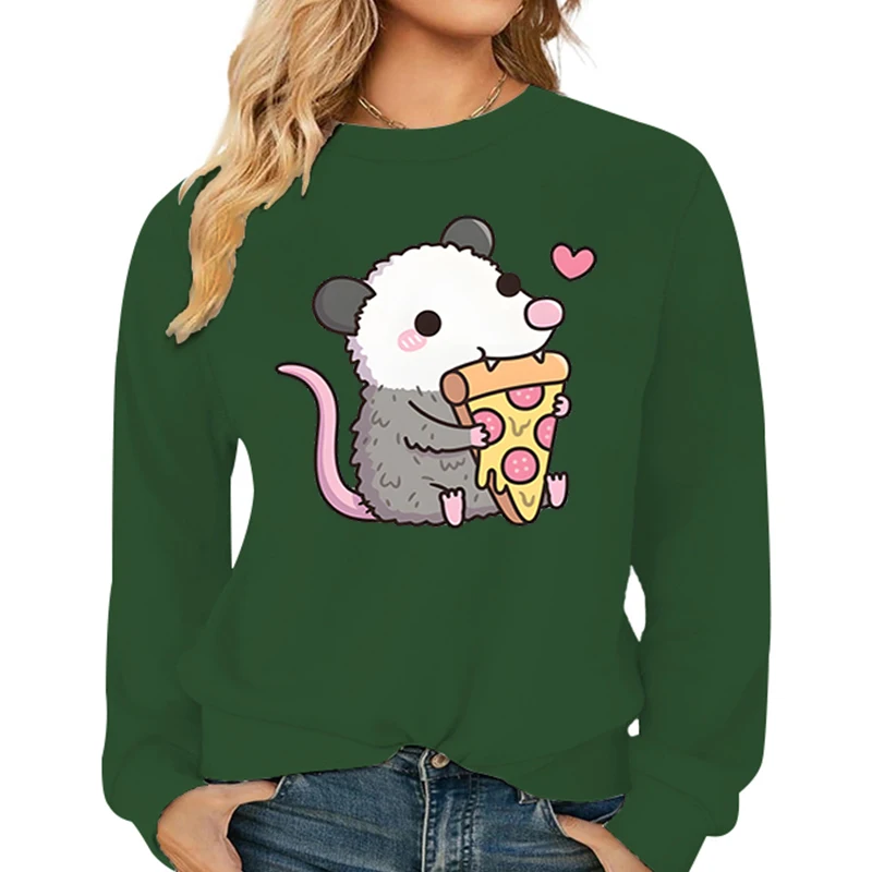 Name | Lovely Opossum Pizza Hoodies Women Fashion Cartoon Animal Pullover O-Neck Kawaii Opossum Women's Clothing Long Sleeve Sweatshirt |