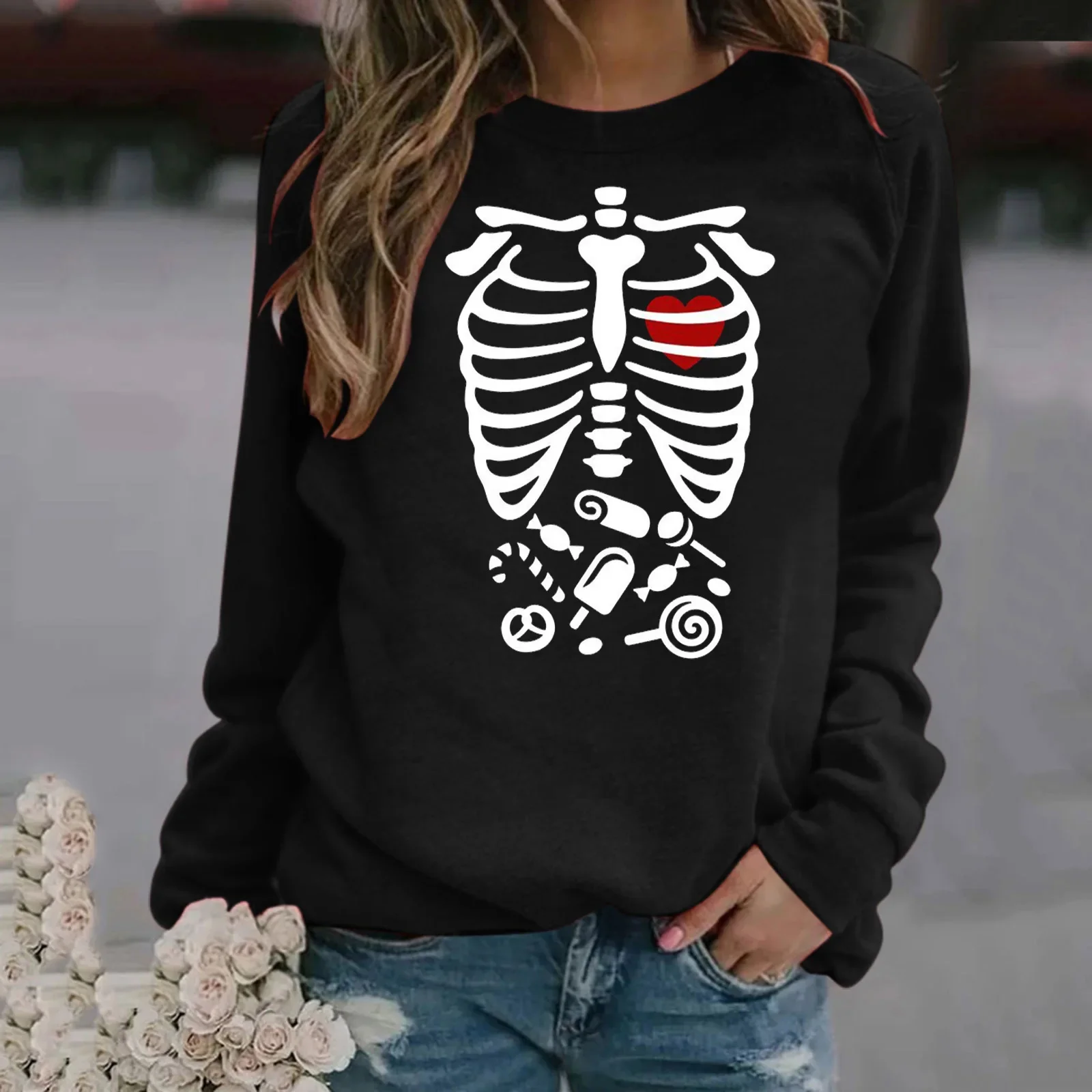 Name | New Skull Love Pattern Crew-neck Hoodie for Women Sweatshirt Women Clothing Streetwear Women Tops |
