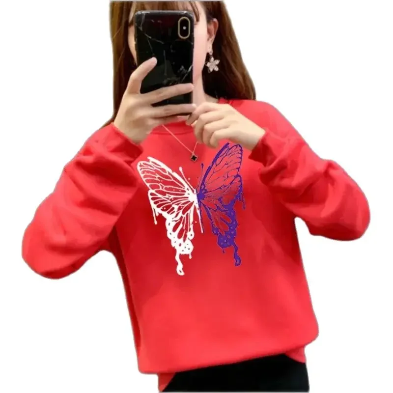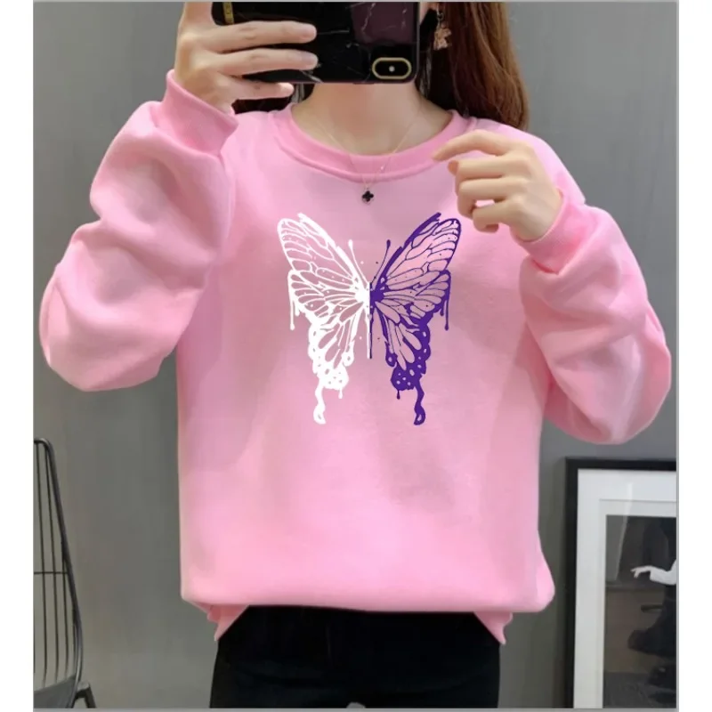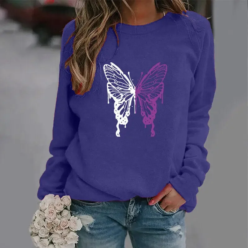 Women Sweatshirt Long Sleeve Pullover Ladies Fashion Crew Neck Fall T-shirt Butterfly Printing Sweatshirt Winter Clothes