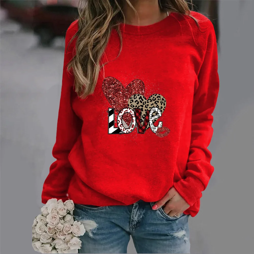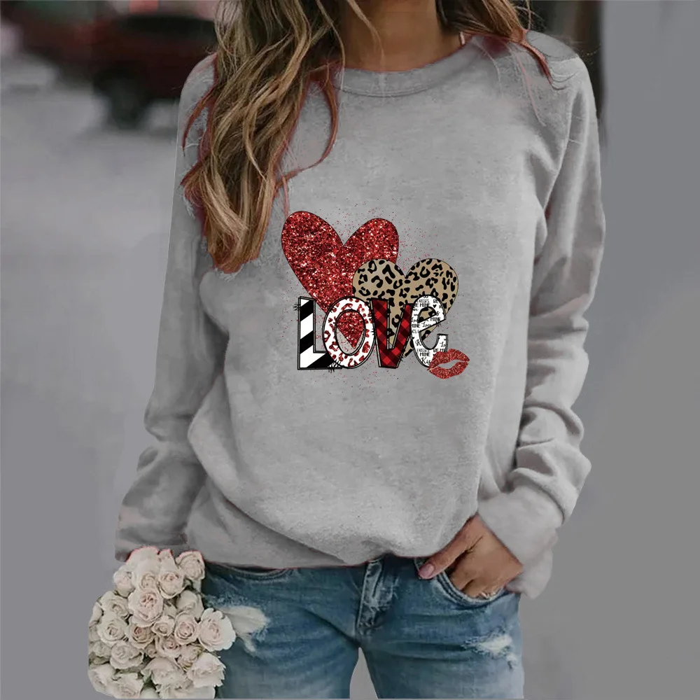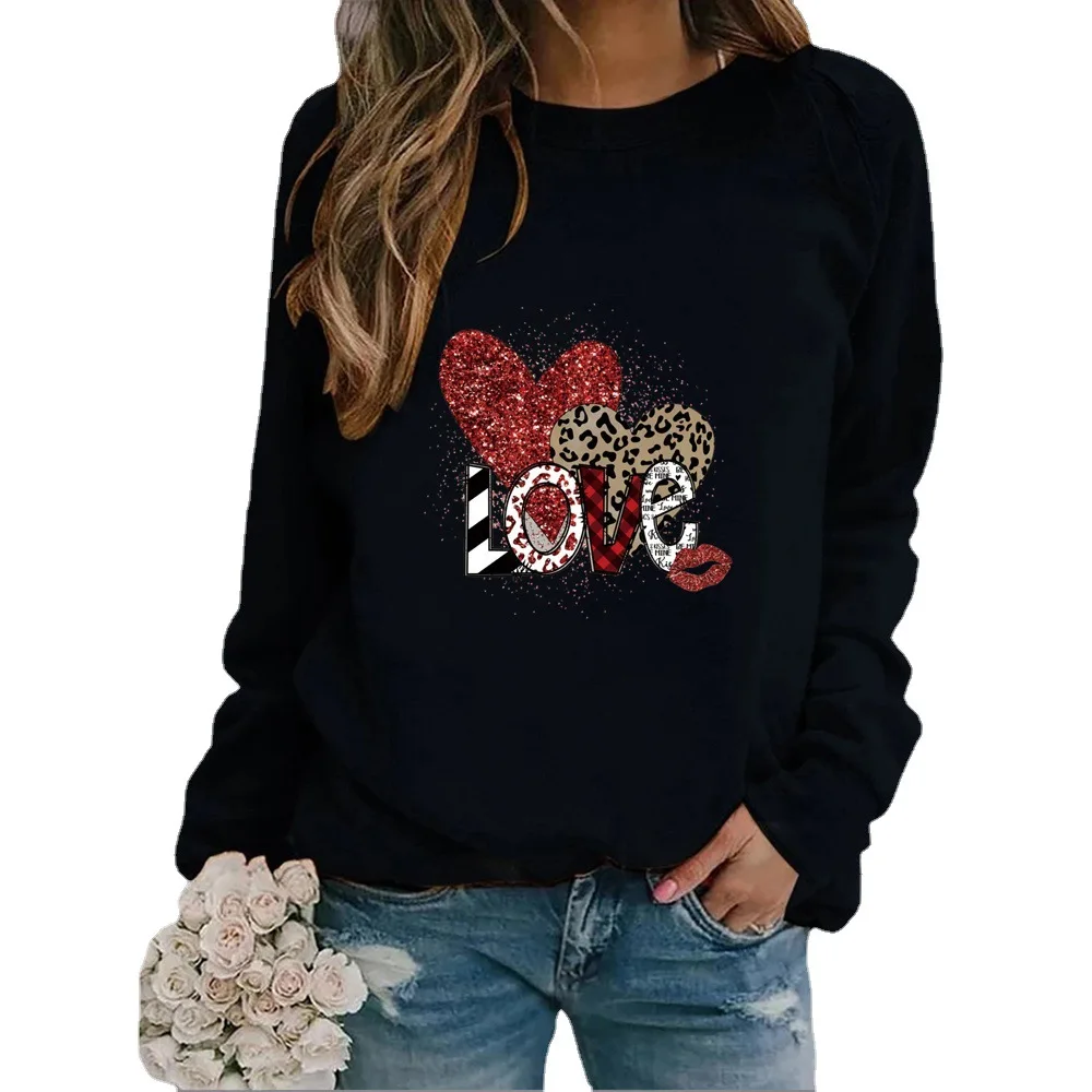 Name | Leopard Print Love Printed Round Neck Hoodie New European and American Valentine's Day Hot Sales Streetwear Women Sweatshirt |