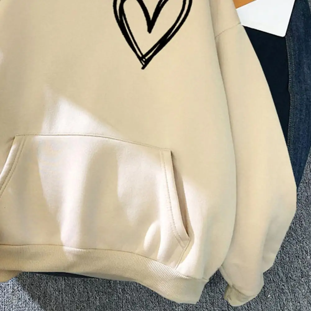 Name | Women Drawstring Hooded Autumn Winter Heart Print Pullover Sweatshirt Stand Collar Long Sleeve Pocket Student Hoodie Streetwear |