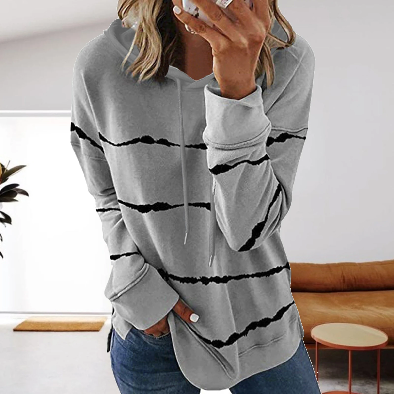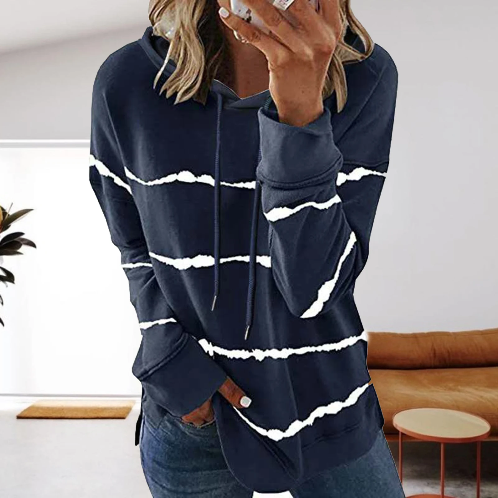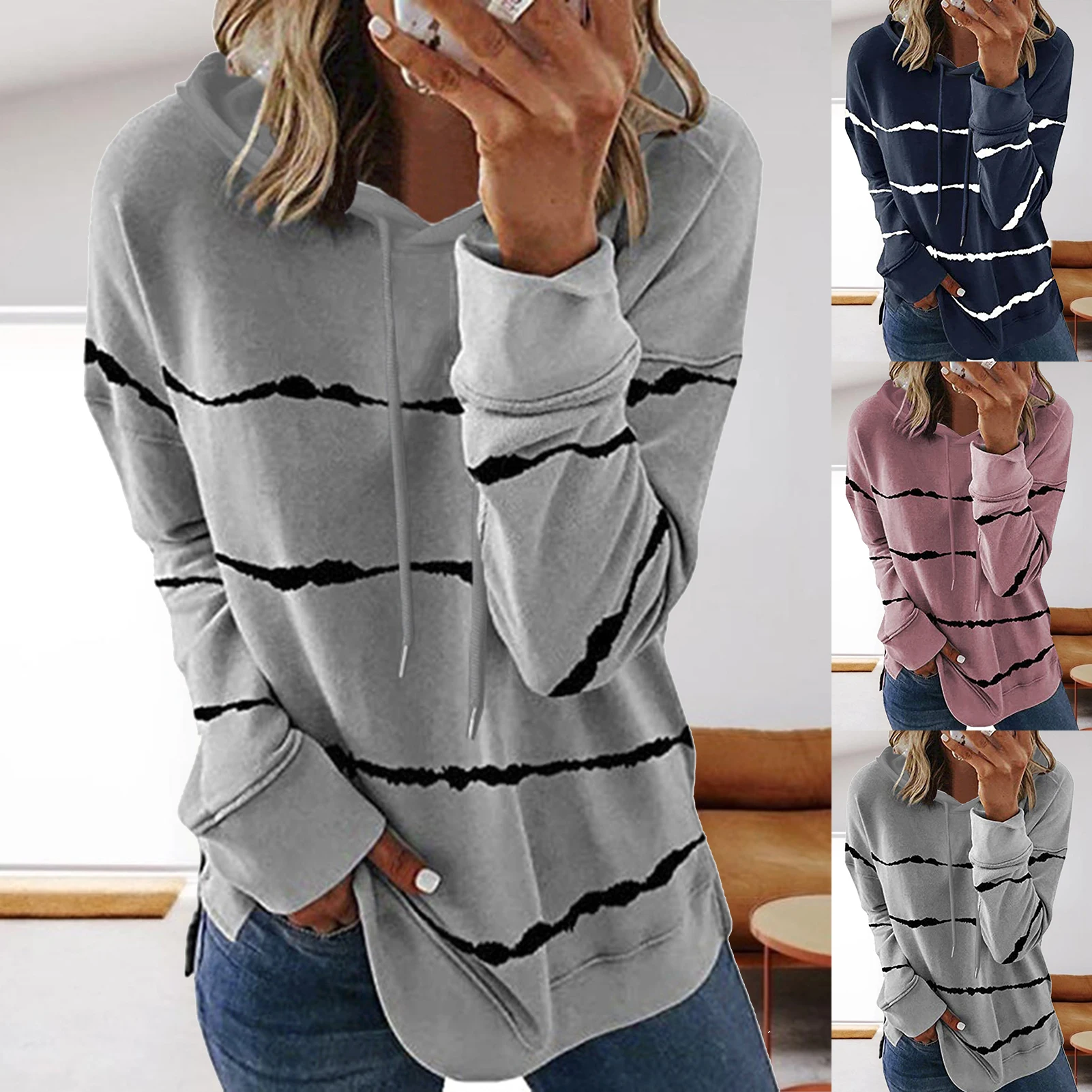 Polyester women Tops Casual Long Sleeve Pullover Stripe Print Women Oversized Sweatshirt for Shopping ropa de mujer 2020