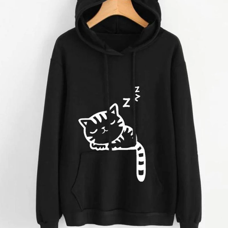 Name | Autumn Spring Pullover Hoodies Women Cute Ears Sweatshirts Loose Thermal Hooded Top with Adjustable Drawstring Tops Female New |