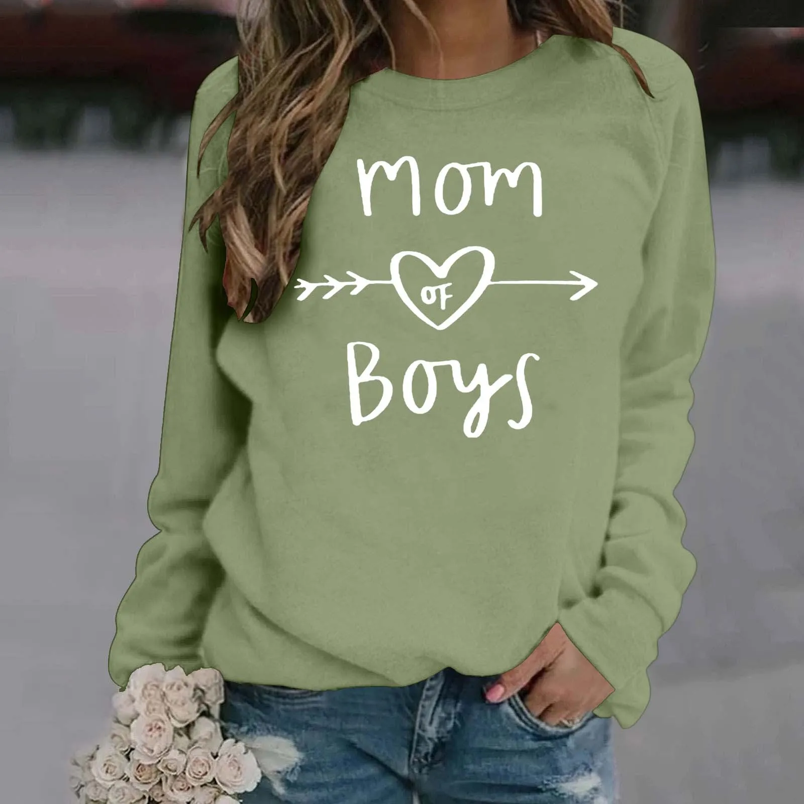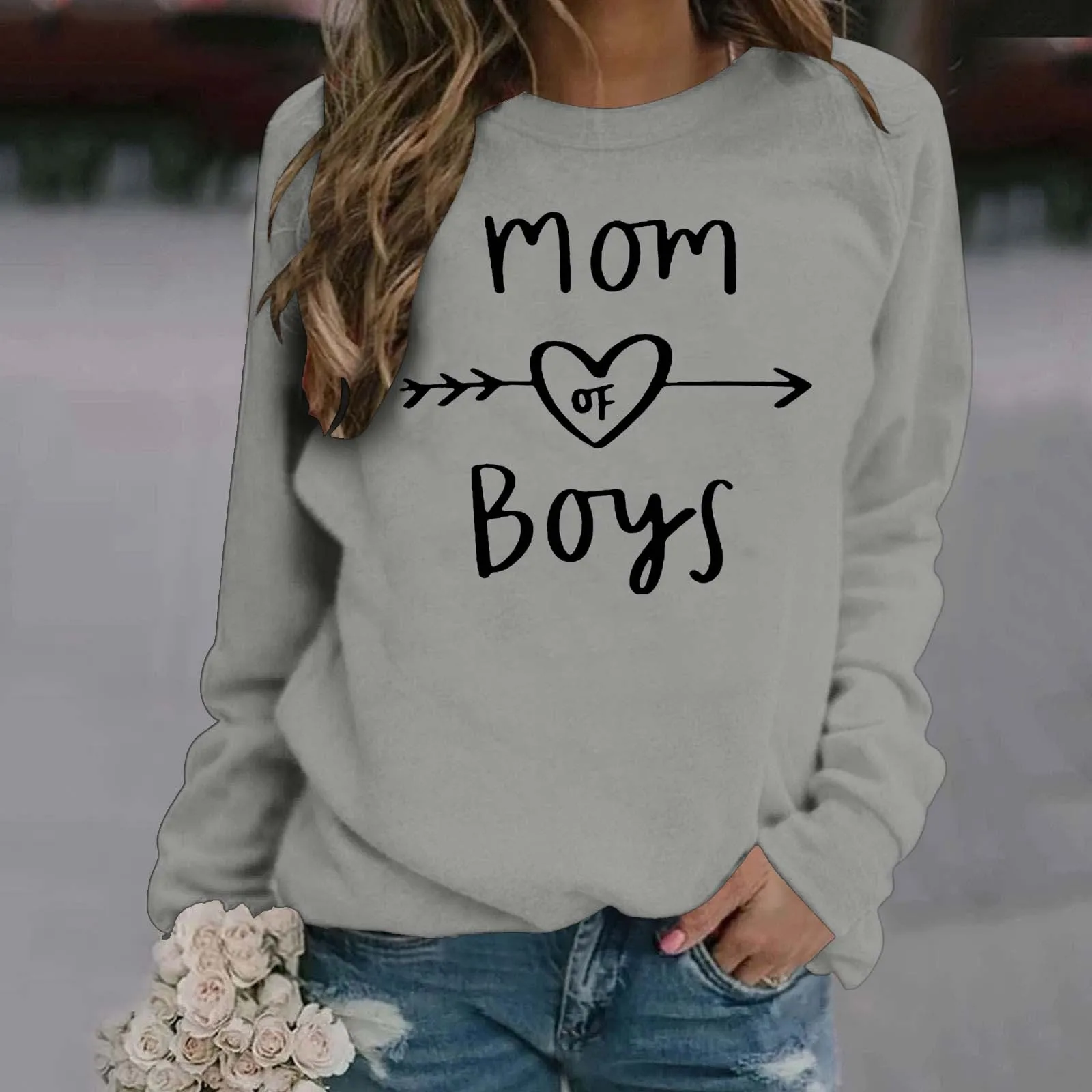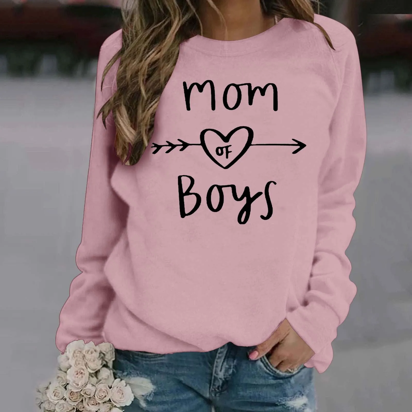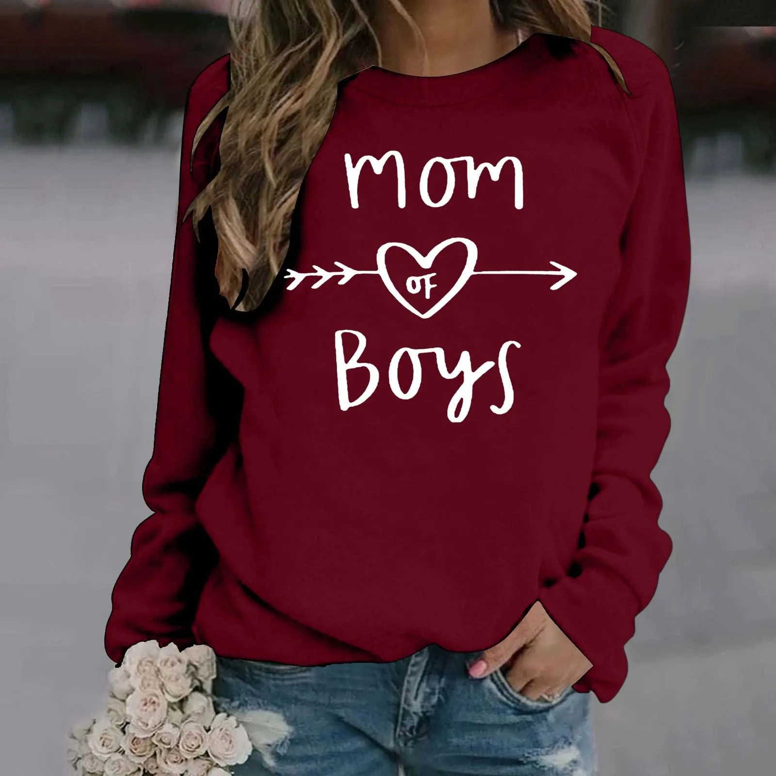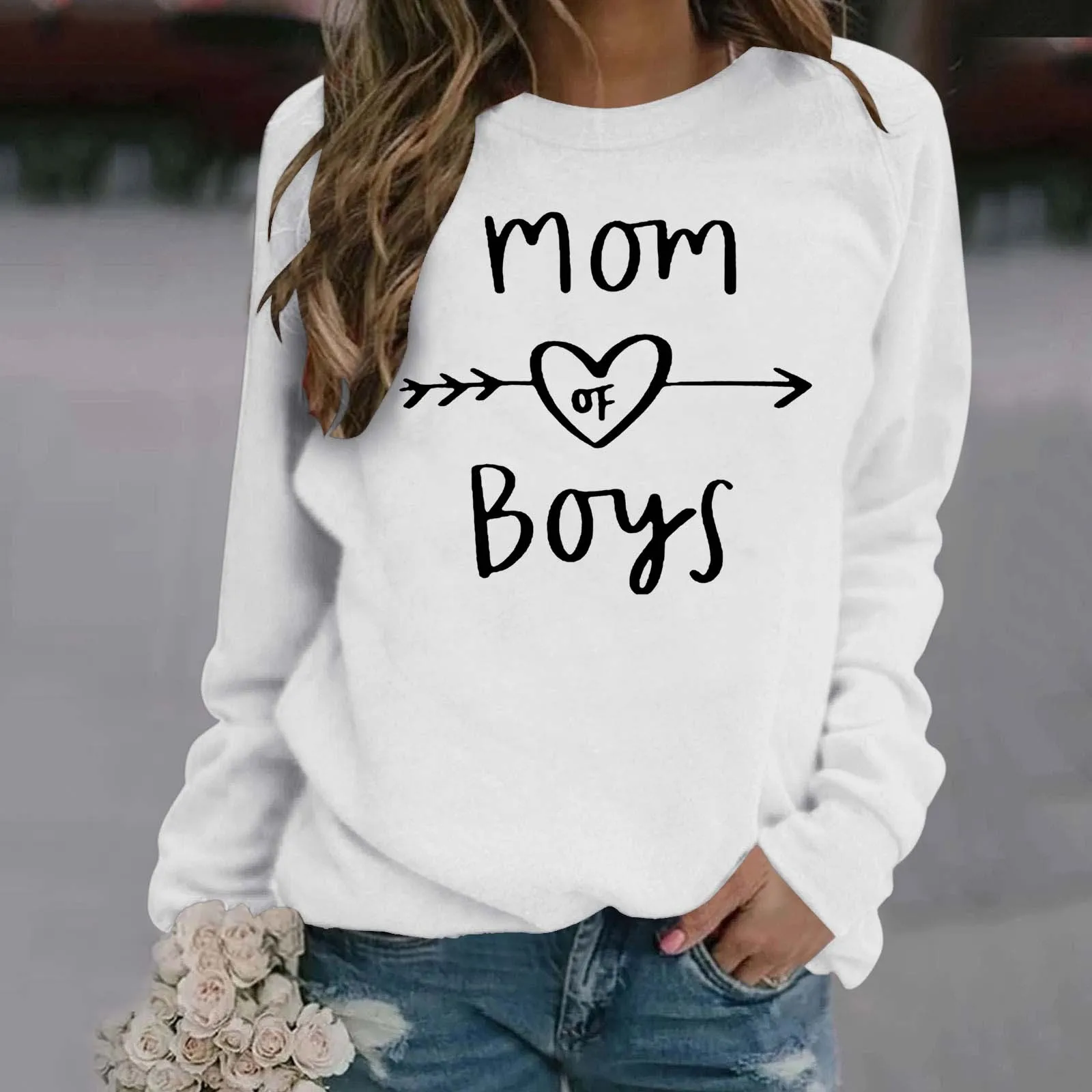 Ladies Casual Letter Print Solid Color Pullover Round Neck Long Sleeve Shoulder Hoodie Ladies Zip Sweater