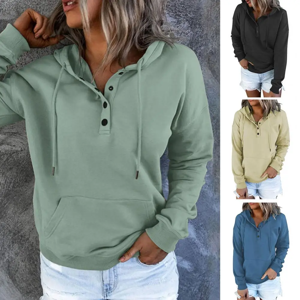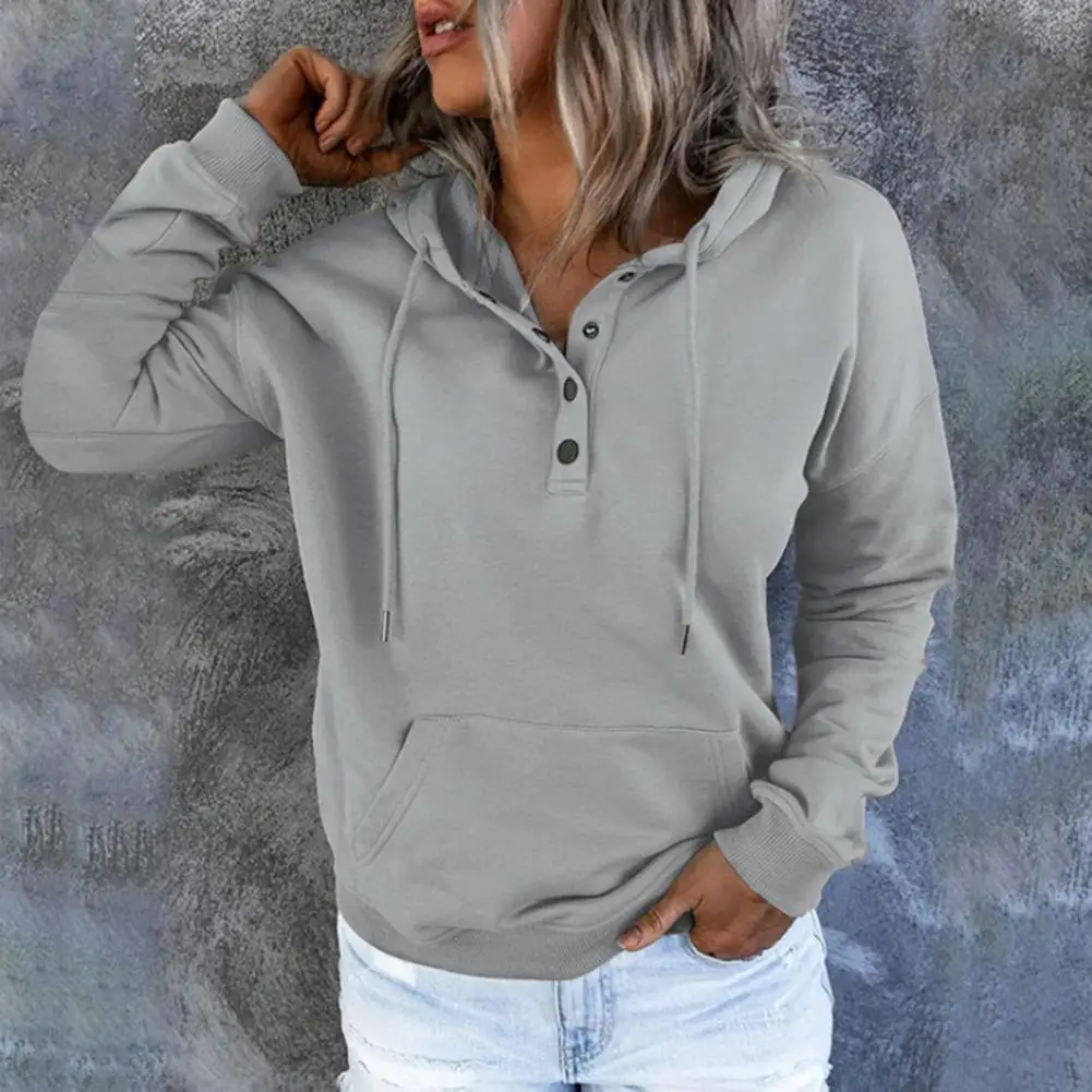 Name | Women Solid Color Hoodie Women Fall Hoodie Cozy Drawstring Hoodie with Big Pocket Button Decor for Women Soft Warm Pullover |