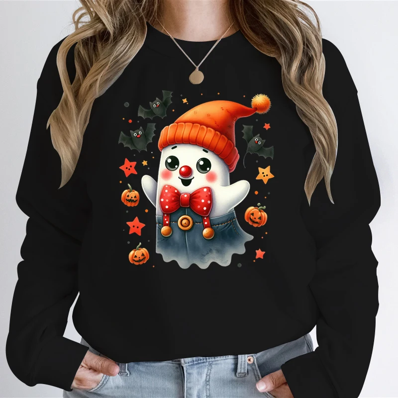 Name | Clown Ghost Graphic Hoodless Sweatshirts Women Cute Halloween Creative Gift Hoodies Pumpkin Spooky Season Ladies Autumn Pullover |