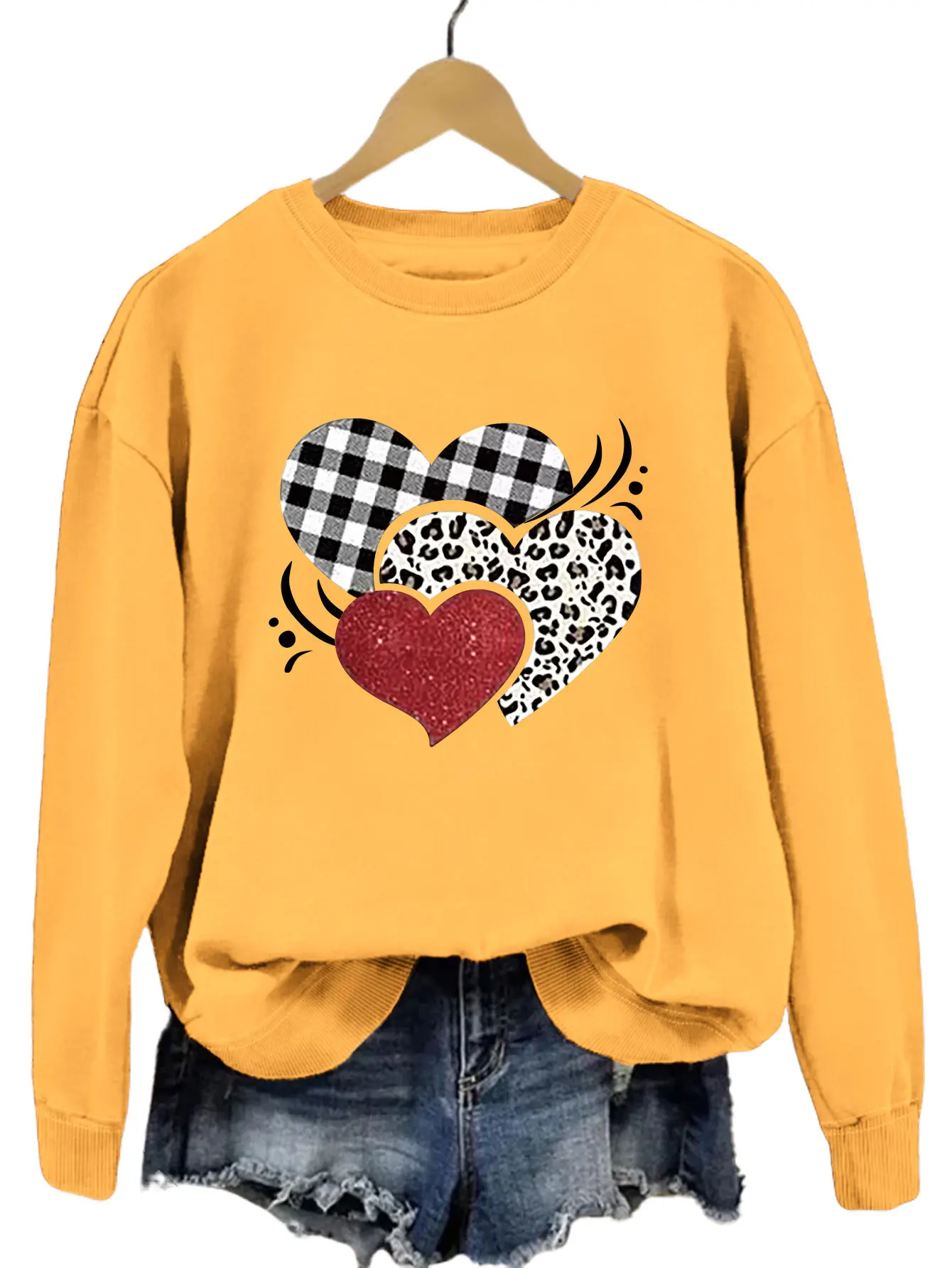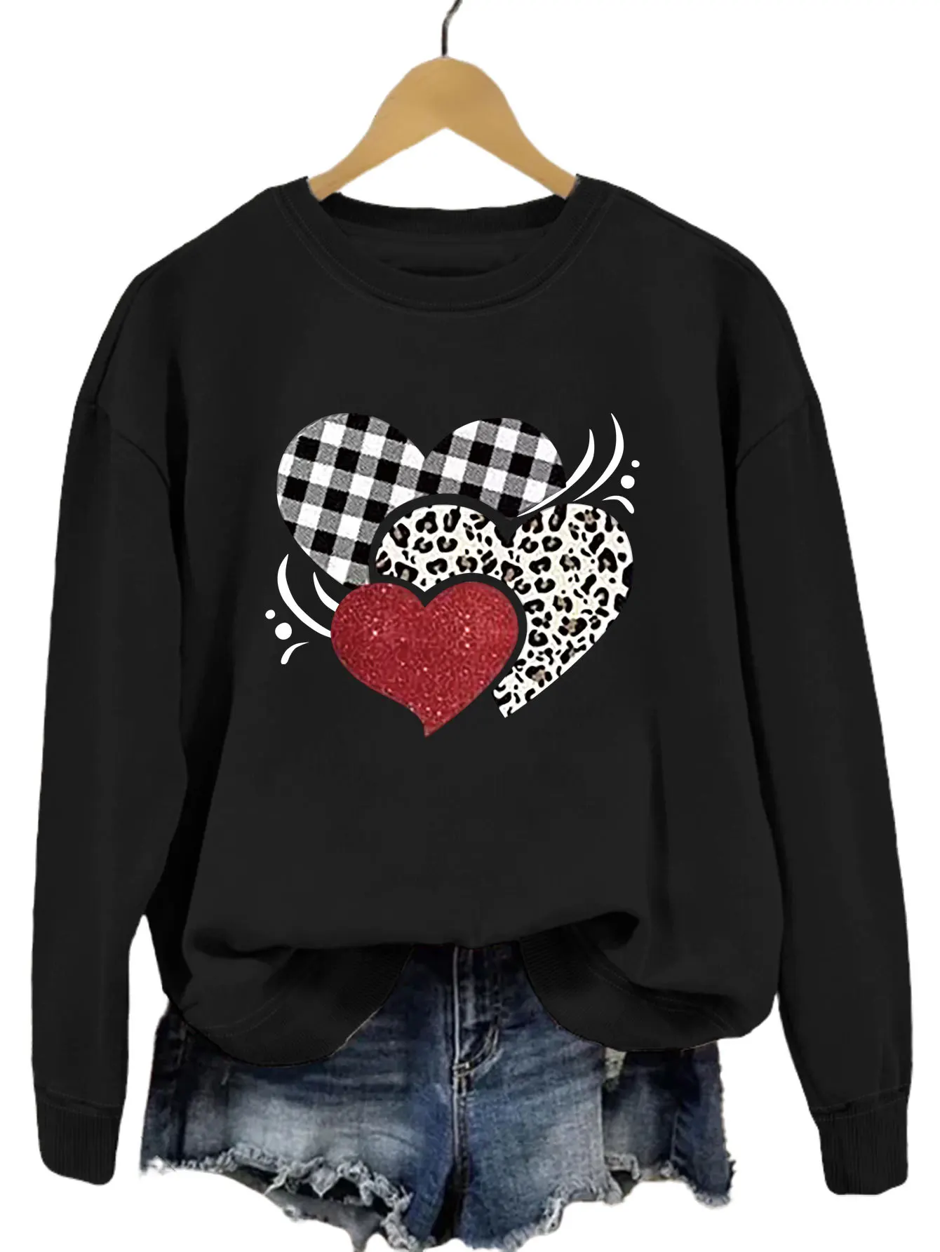 Name | Europe and United States Autumn Three Love Printed Pattern Fashion All Round Neck Hoodie Women Pullover Long Sleeve Wholesale |