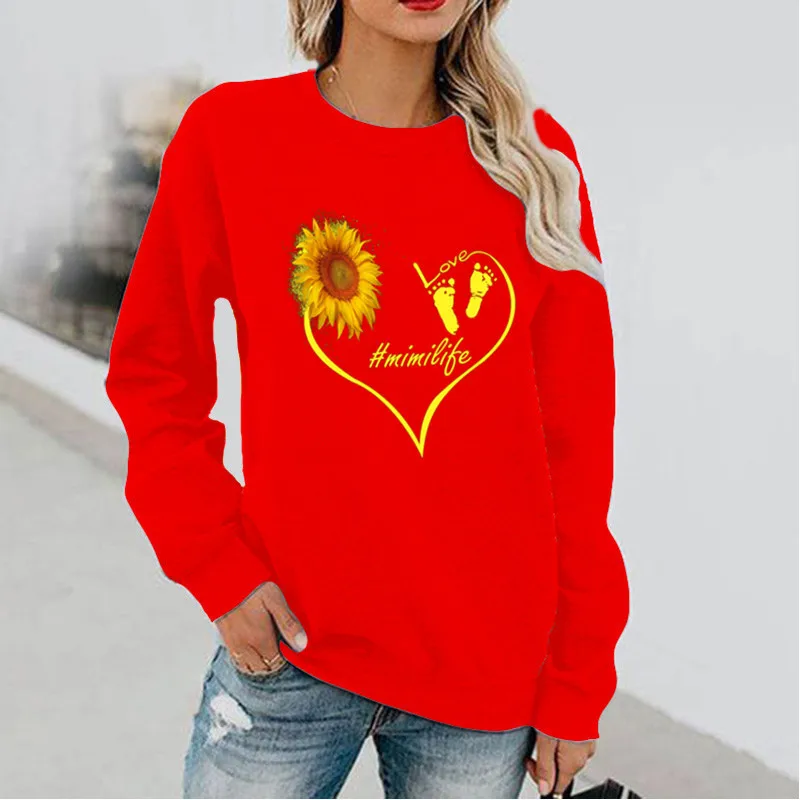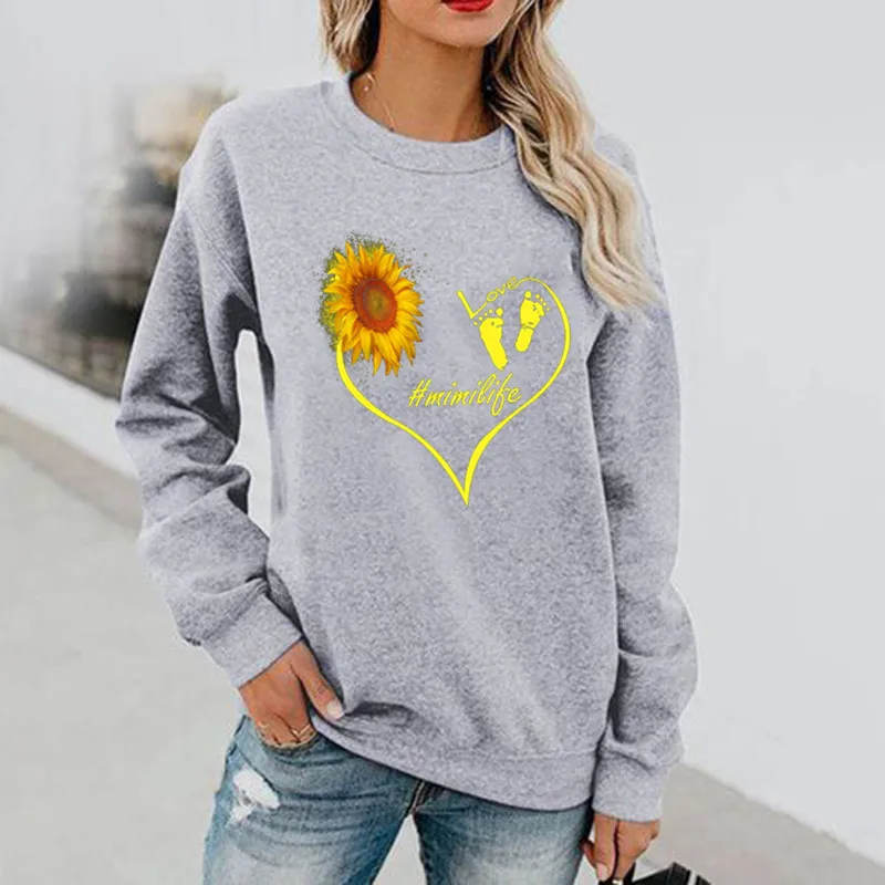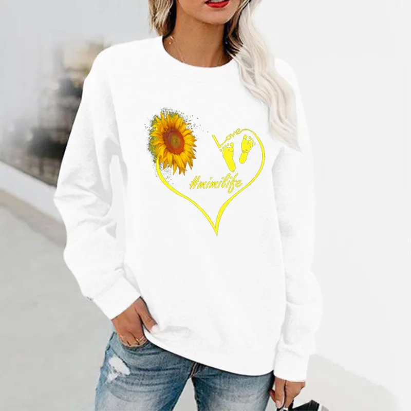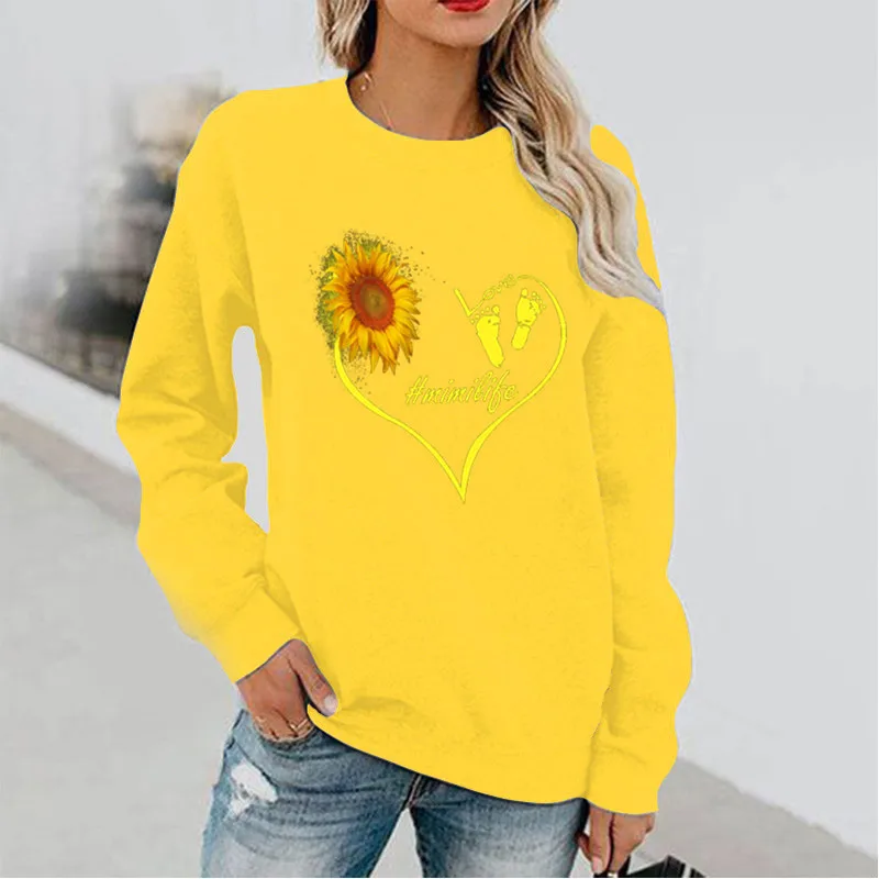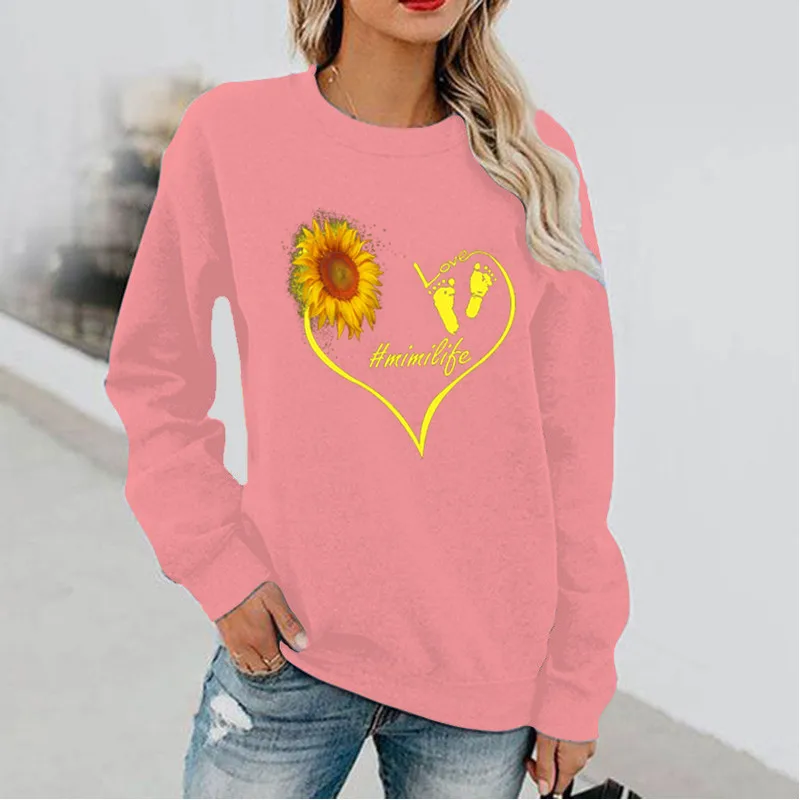Name | Love Sunflower Fun Pattern Printed Long Sleeve Hoodless Crewneck Hoodie Streetwear Women Sweatshirt Clothes |