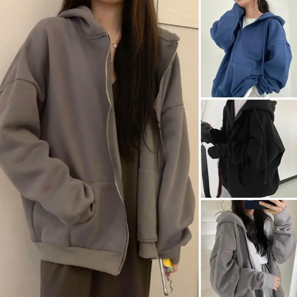 Name | Solid Color Coat Women Zip-up Hoodie Stylish Women's Winter Coat Zipper Closure Thick Hood Drawstring Pockets Stay Warm |