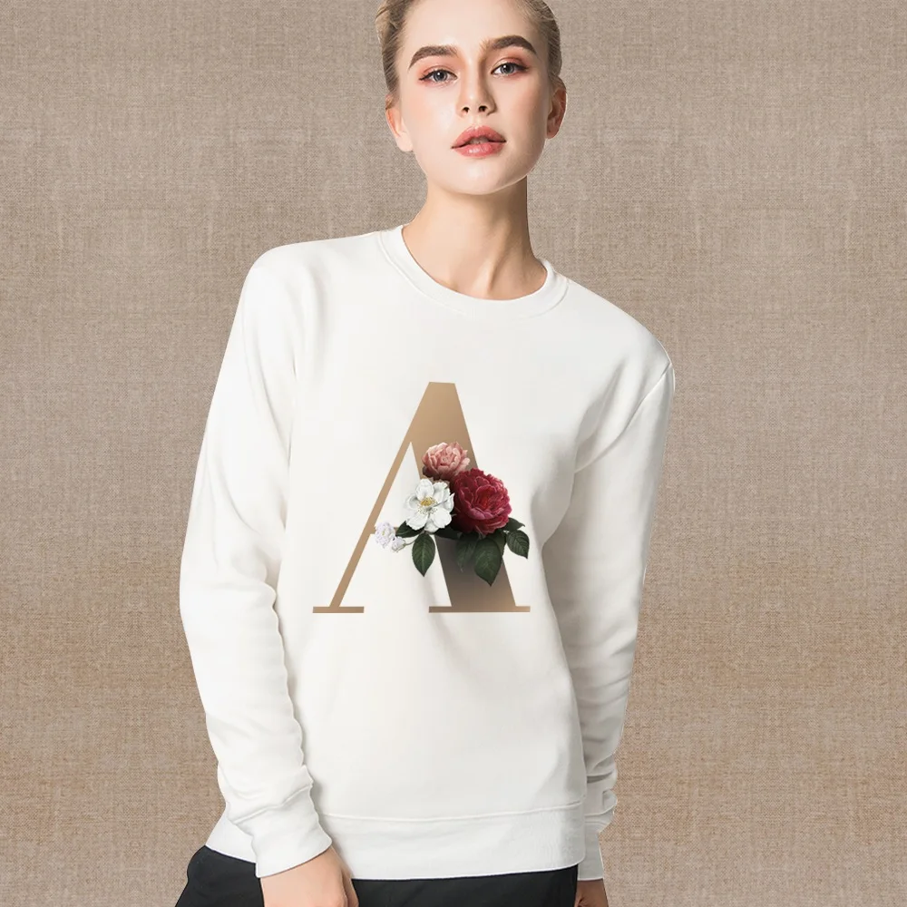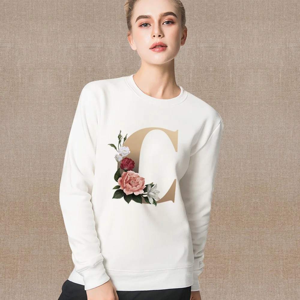 Women's O-Neck Tops Round Neck Pullover Spring Autumn Thin White Long Sleeve Sweatshirt Casual Comfortable gold Series Clothes