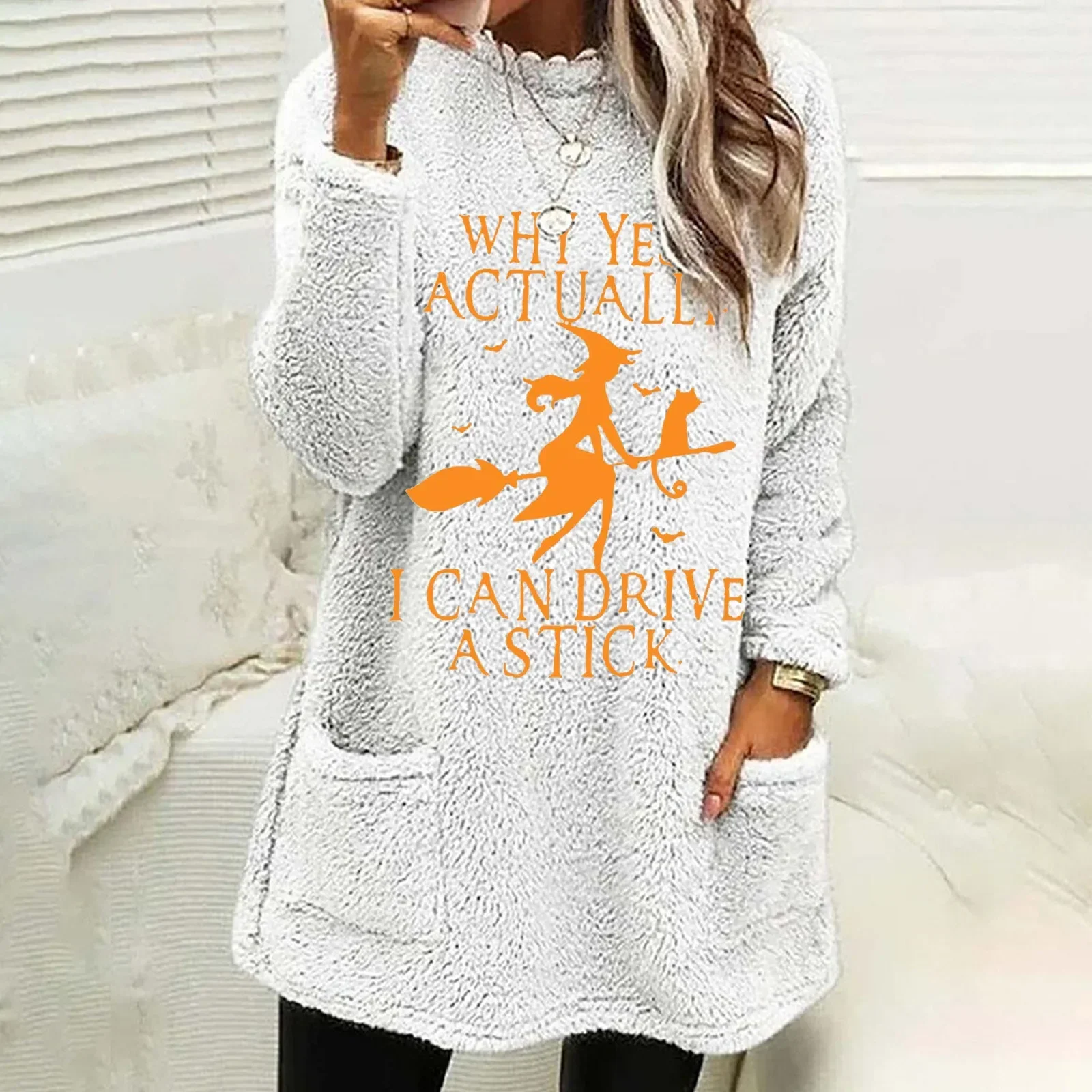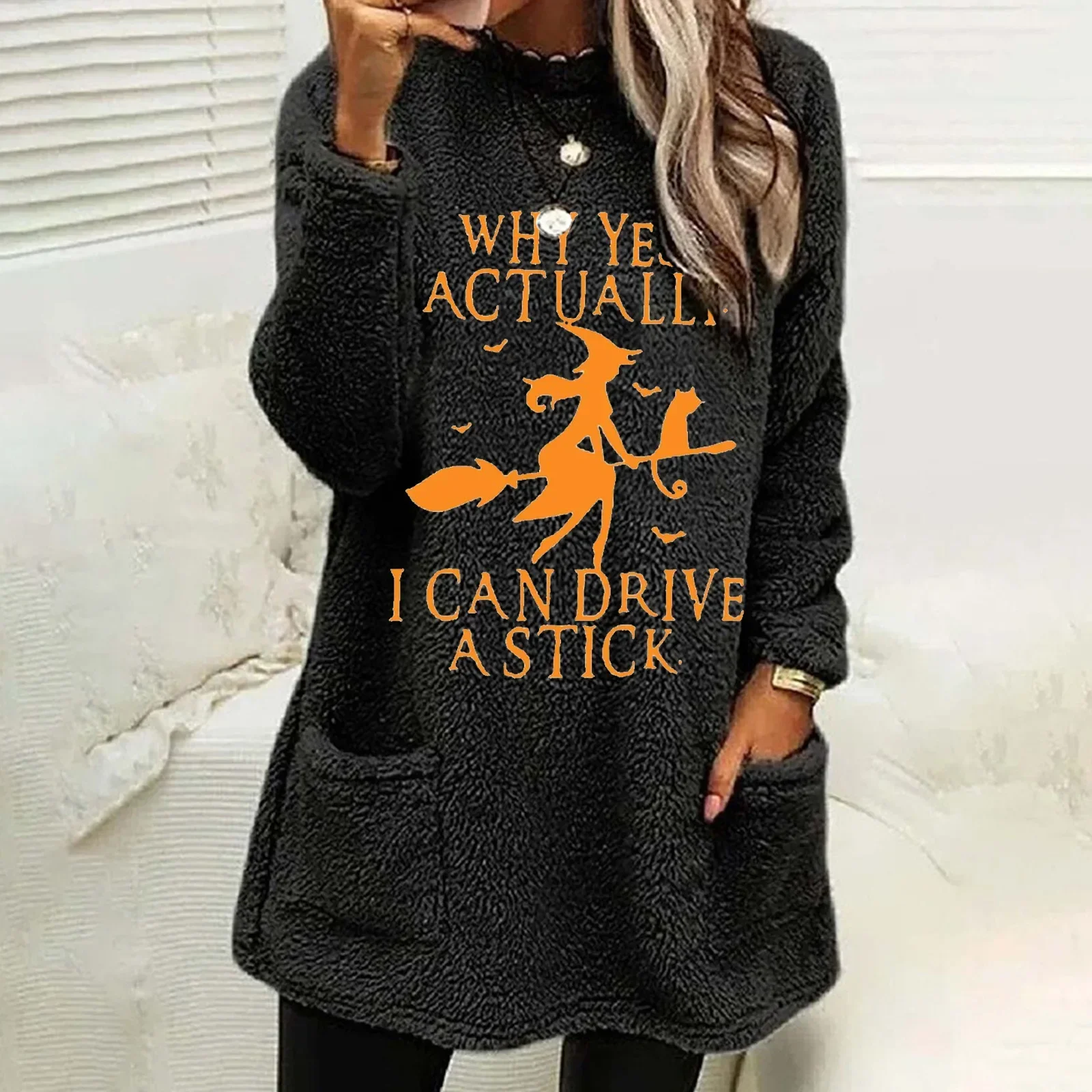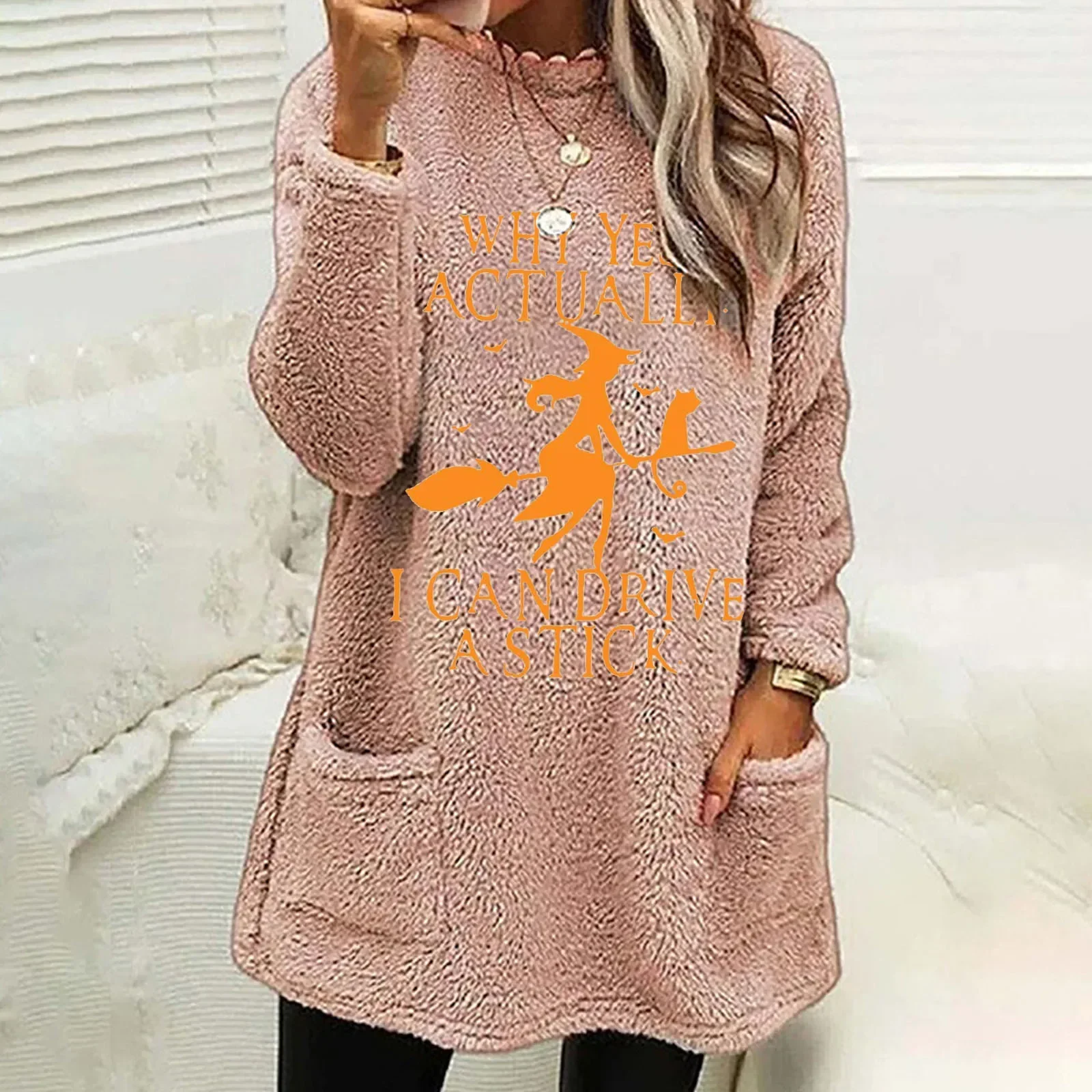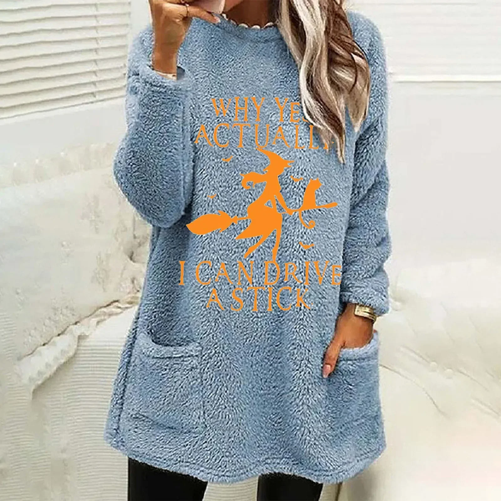 Name | Women's Fluffy Long-Sleeved O-Neck Pullover, Christmas Sweatshirts, Pocket Tops, Korean Fashion, Autumn, Winter |