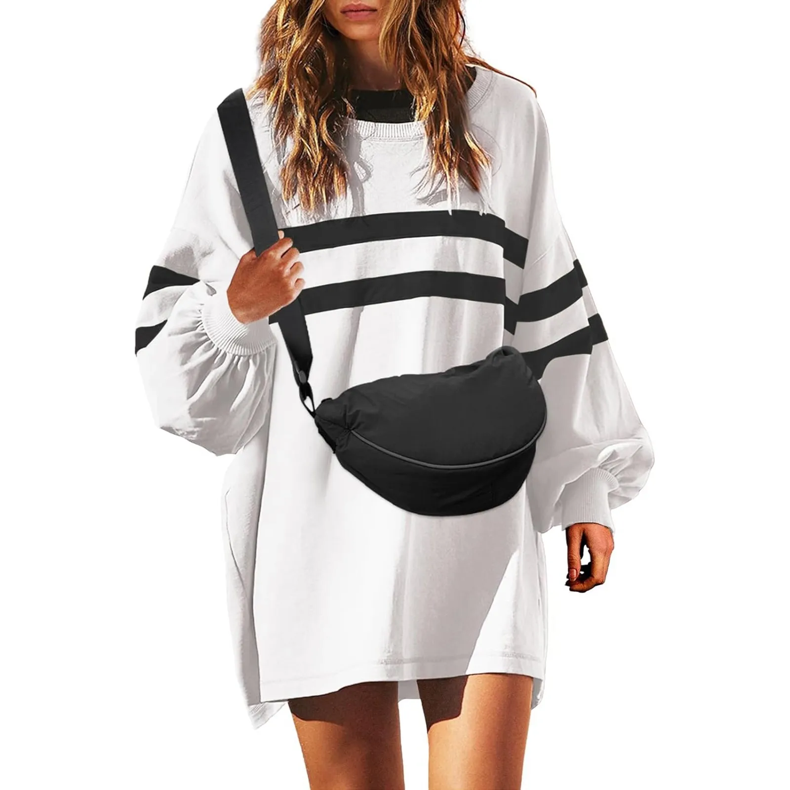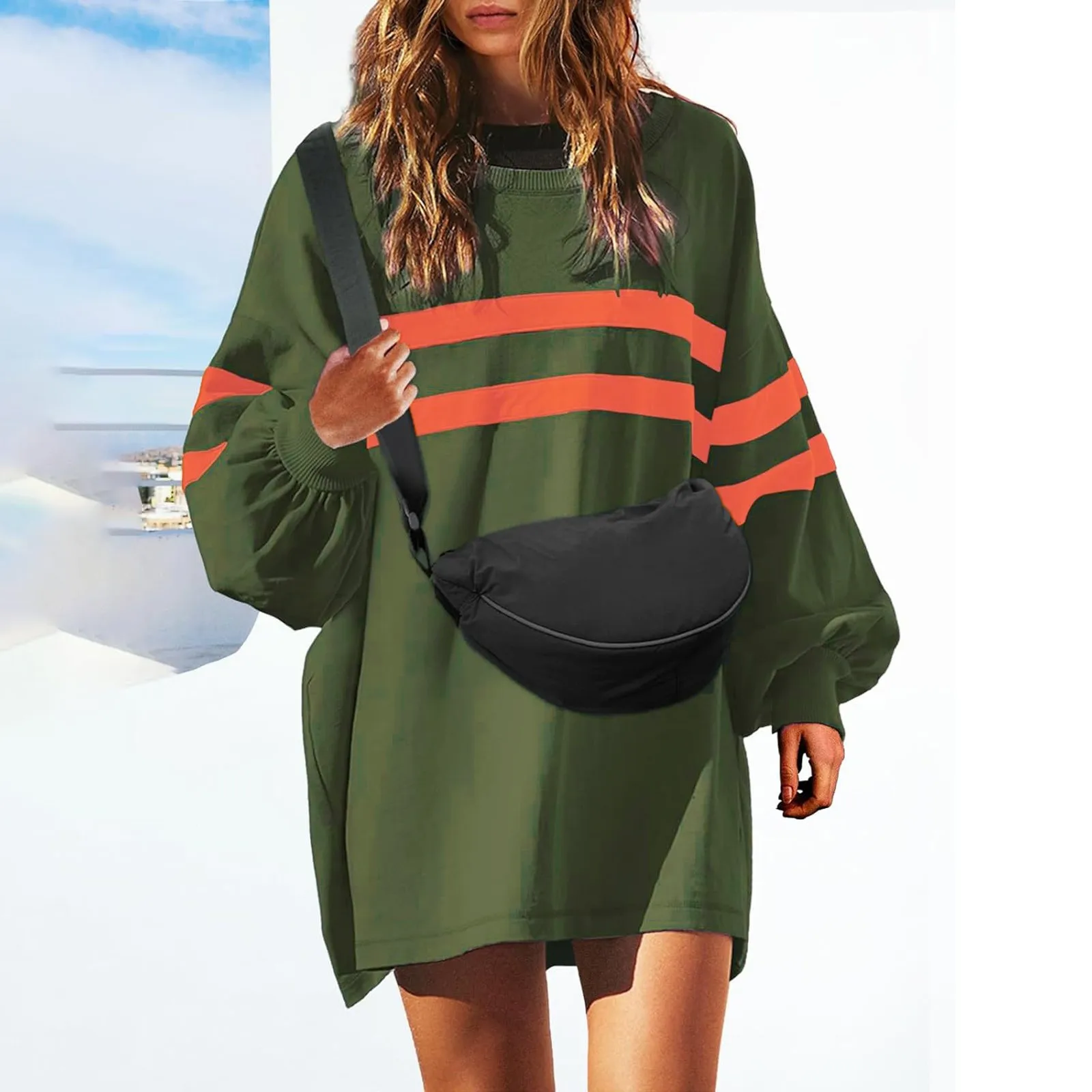 2024 New Women's Autumn Sweatshirt Oversized Striped Sweatshirt Long Sleeve Crew Neck Color Blocking Casual Pullover Tunic Tops