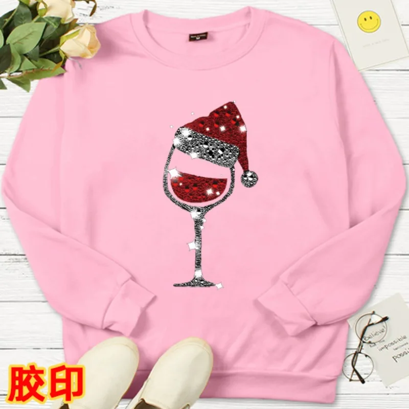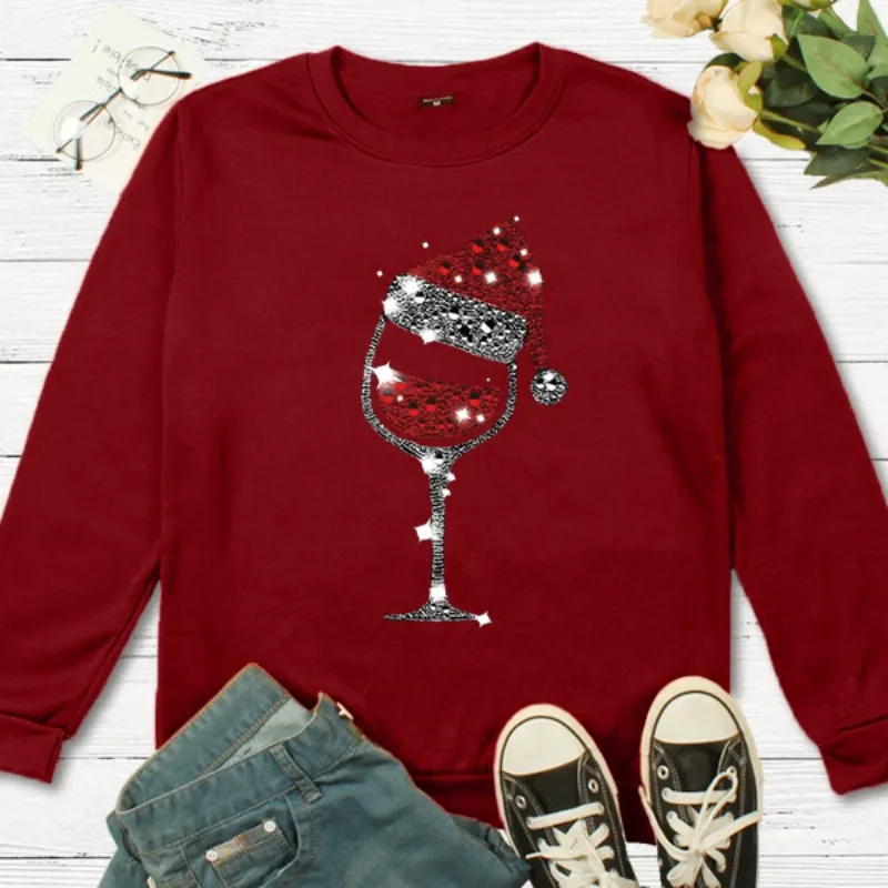Name | New Christmas Wine Glass Christmas Hat Pattern Printed Long Sleeve Crewneck Hoodie Streetwear Women Aesthetic Clothes |