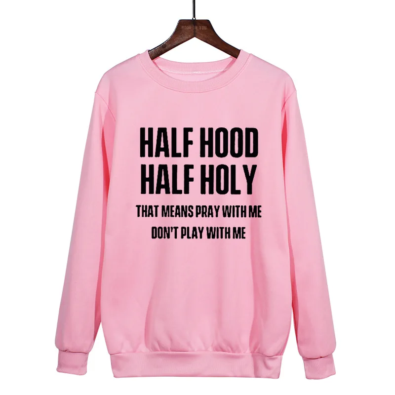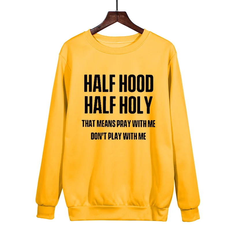 Name | Half Hood Half Holy Letter Casual Loose Plus Size Round Neck Hoodie Harajuku Aesthetic Women Clothing Tops Graphic T Shirts |