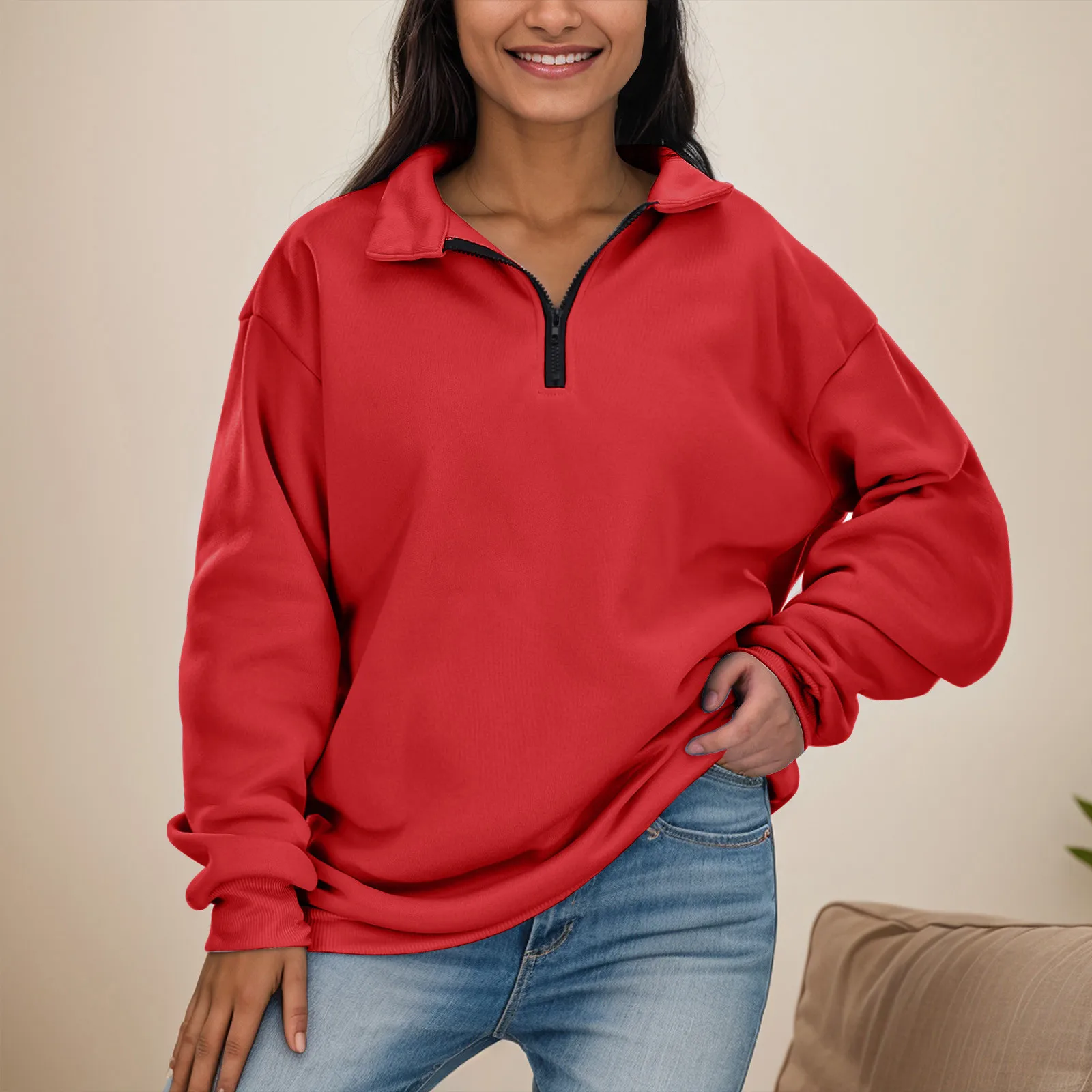 Solid Color Half-open Placket Set Head Zipper Sweater, Spring and Summer Casual Long-sleeved round Collar Sweater, WOMEN'S Wear