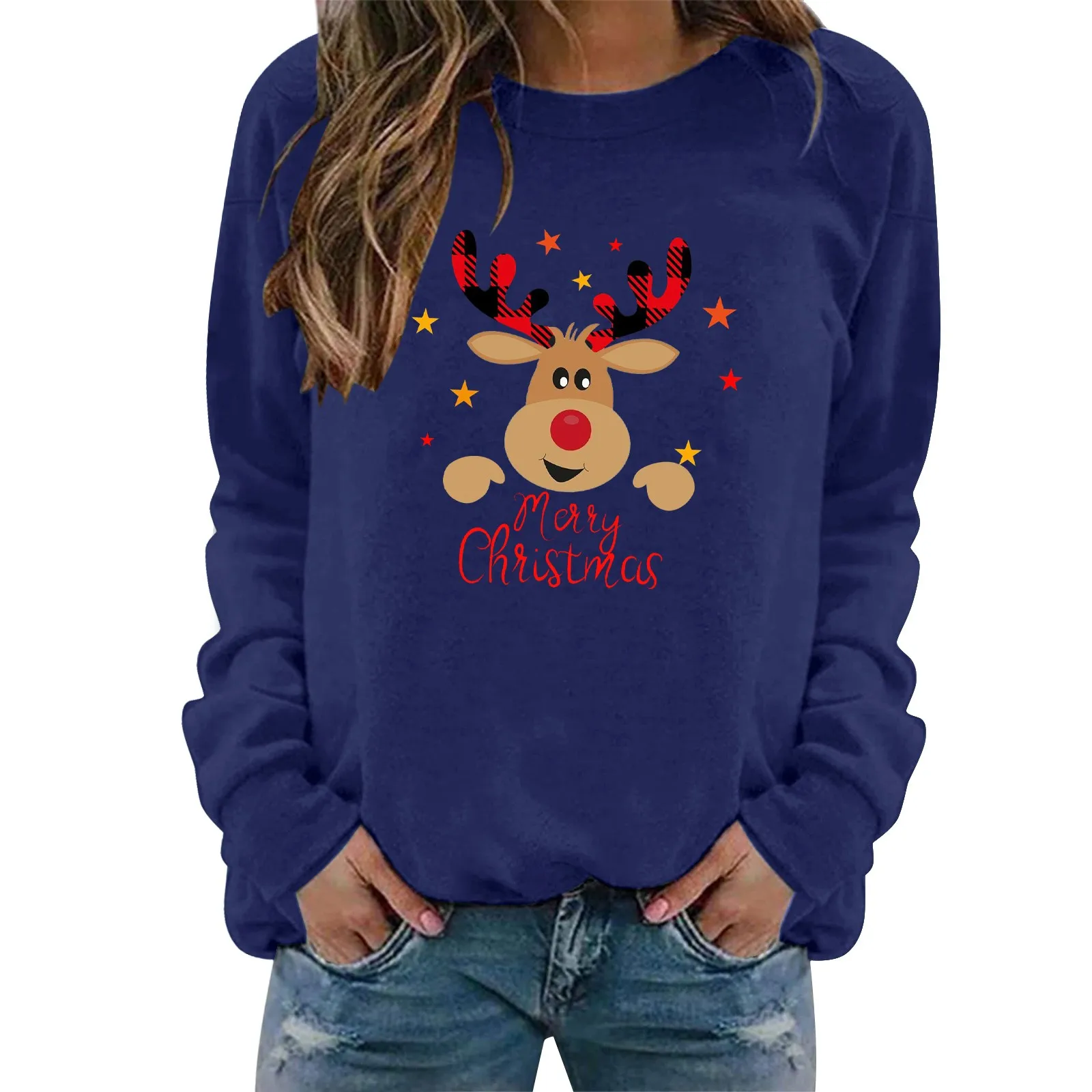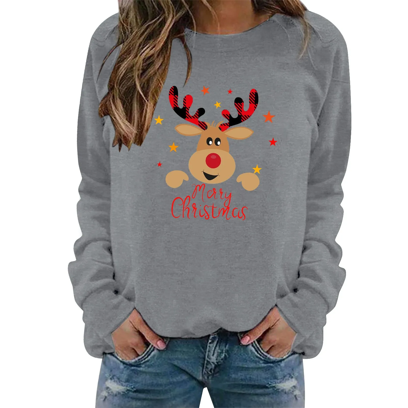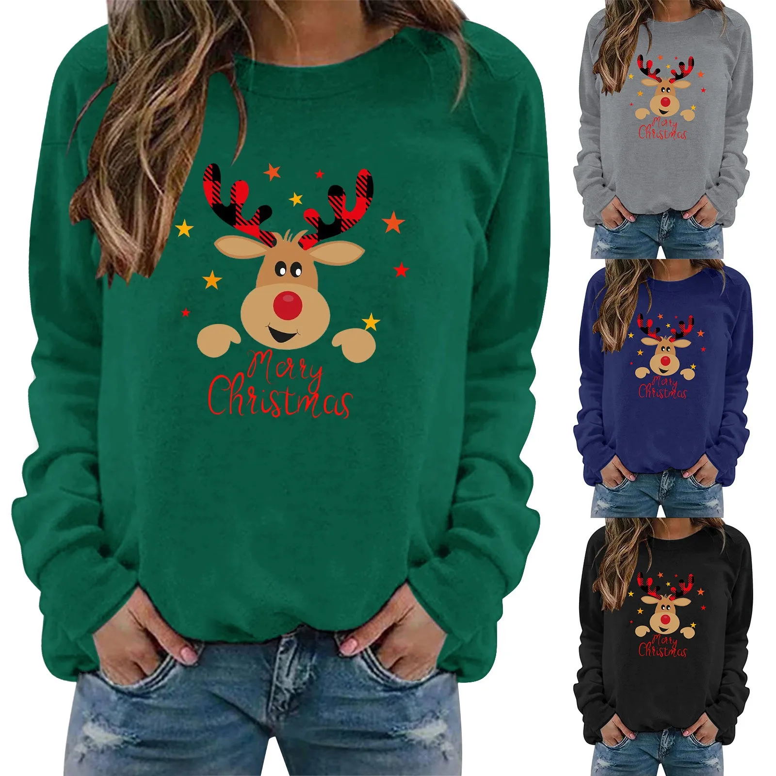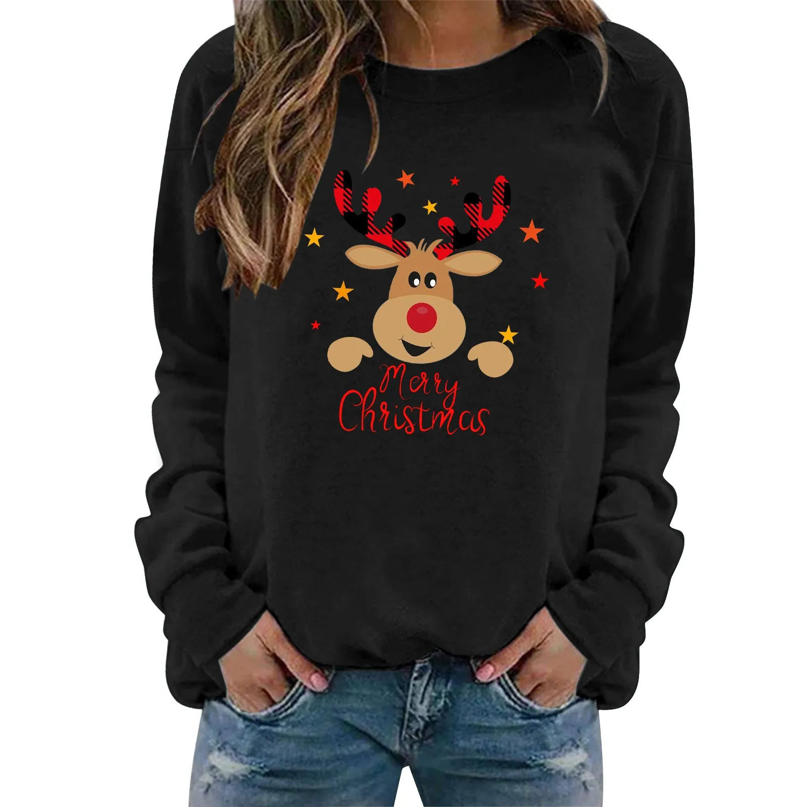 Womens' Printed Sweatshirt Christmas Novelty Jumpers Xmas Sweater Tops Long Sleeve Crewneck Casual Pullover Plus Size