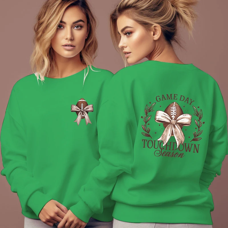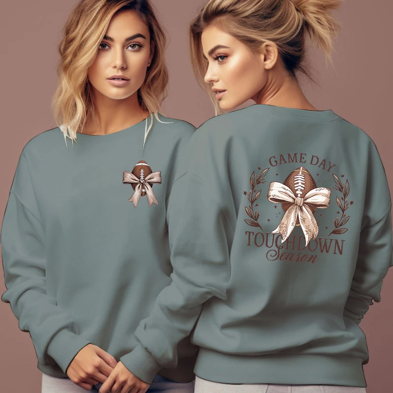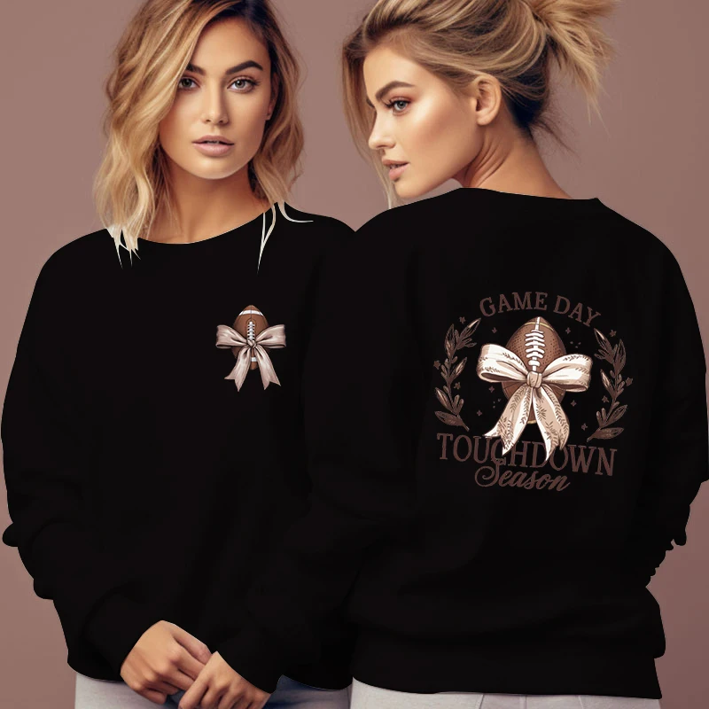 Name | Fall Football Sport Essential Sweatshirt Women Retro Bow Football Graphic Sweatshirts Touchdowns Football Mama Classic Hoodies |