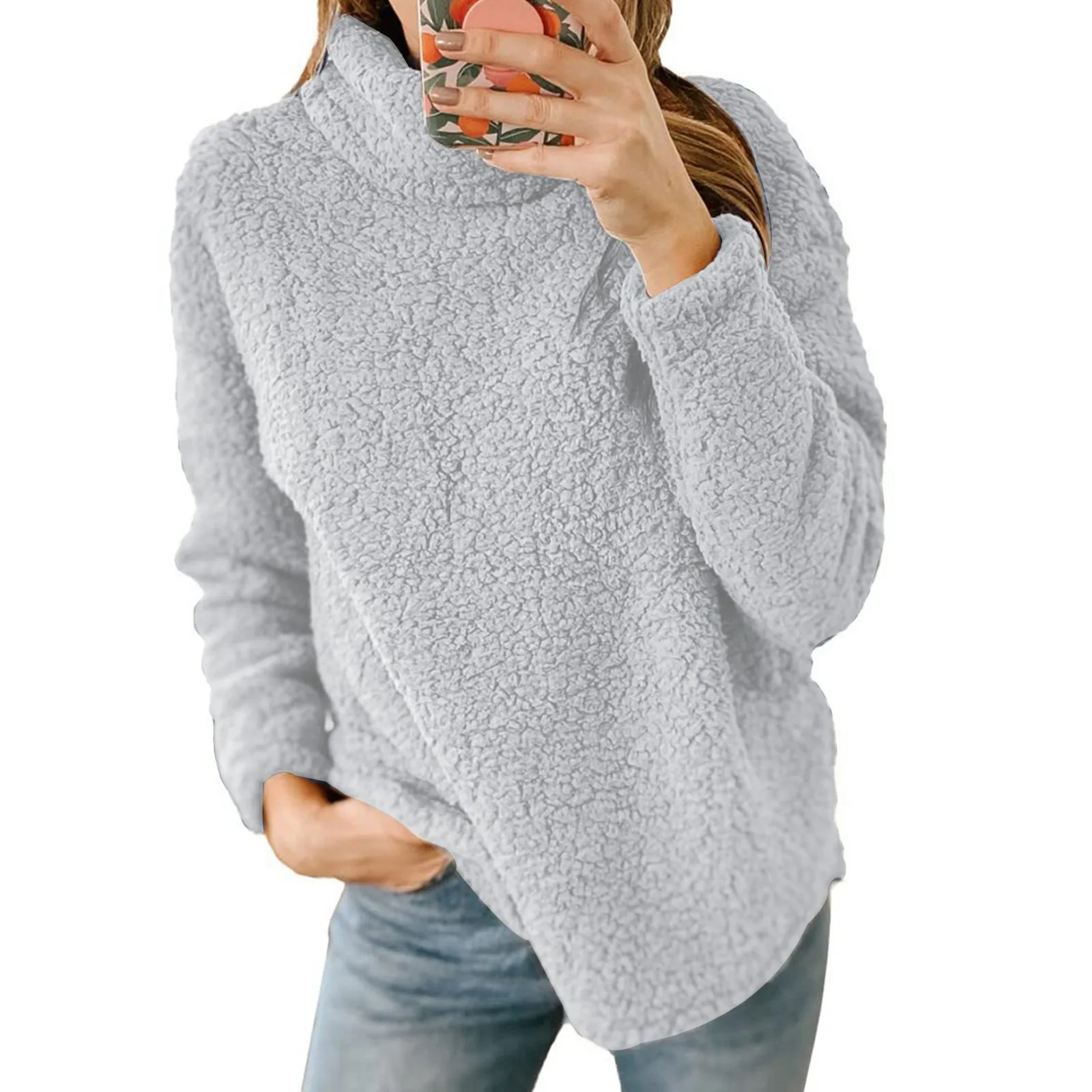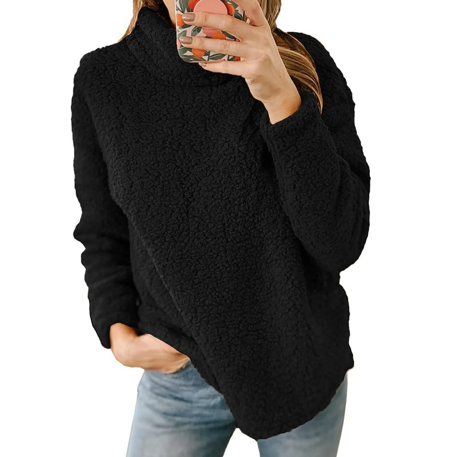 Double Fleece Turtleneck Sweatshirt Women Plush Solid Long Sleeved High Neck Pullover Winter Warm Loose Hoodies Fleece Coats Top