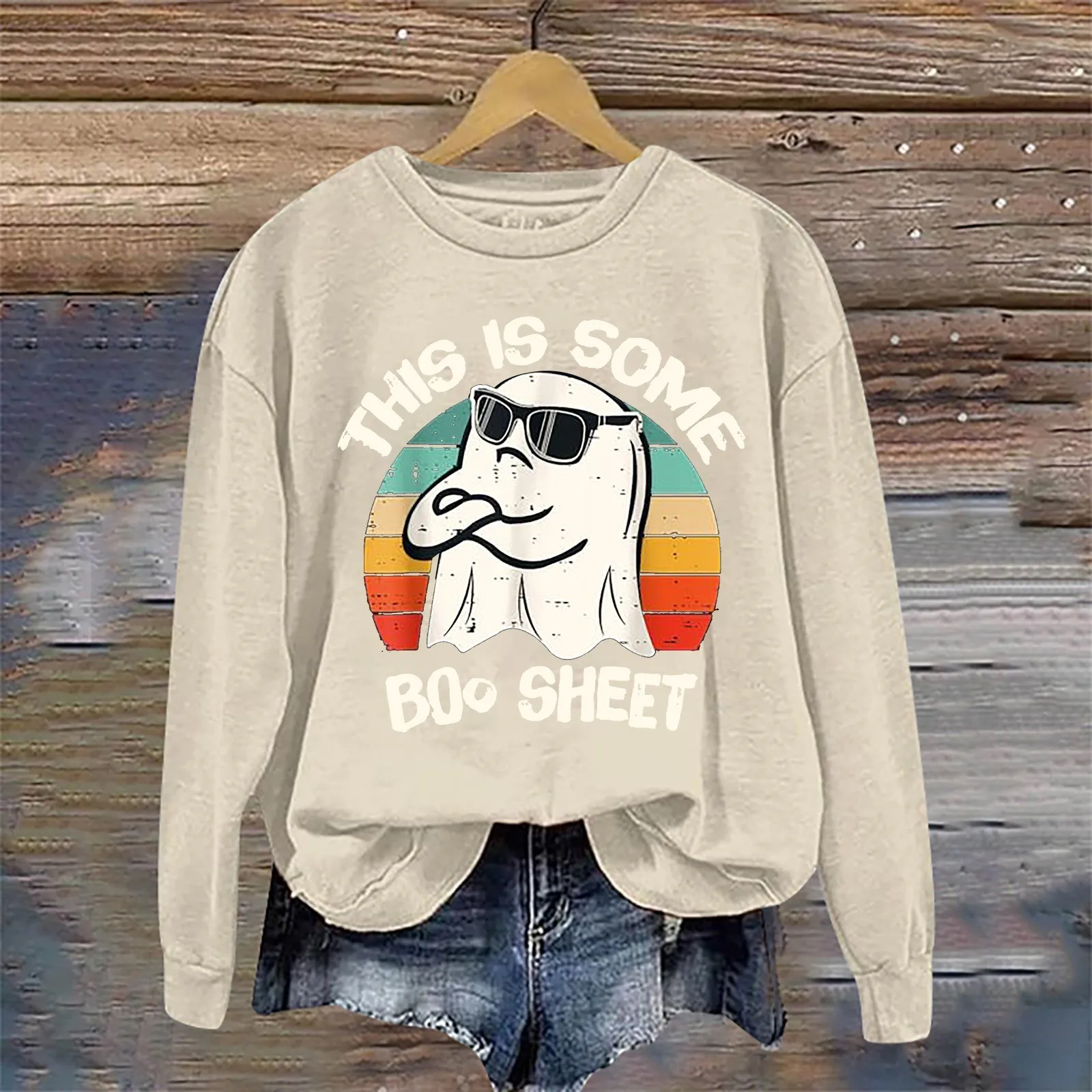 Halloween Crewneck Sweatshirts For Women Autumn Winter Warm Fleece Lined Pullover Tops Athletic Casual Loose Fit Sweaters