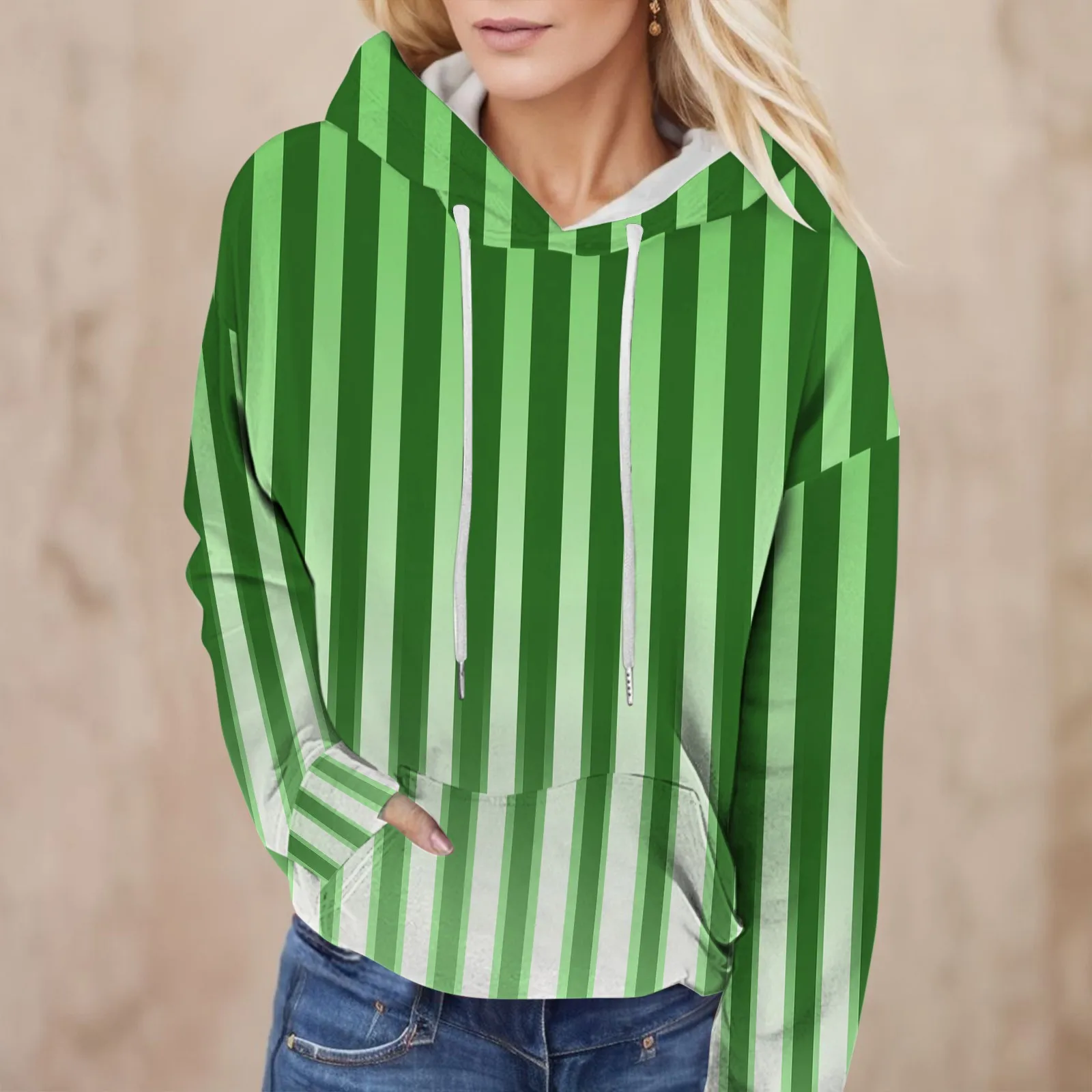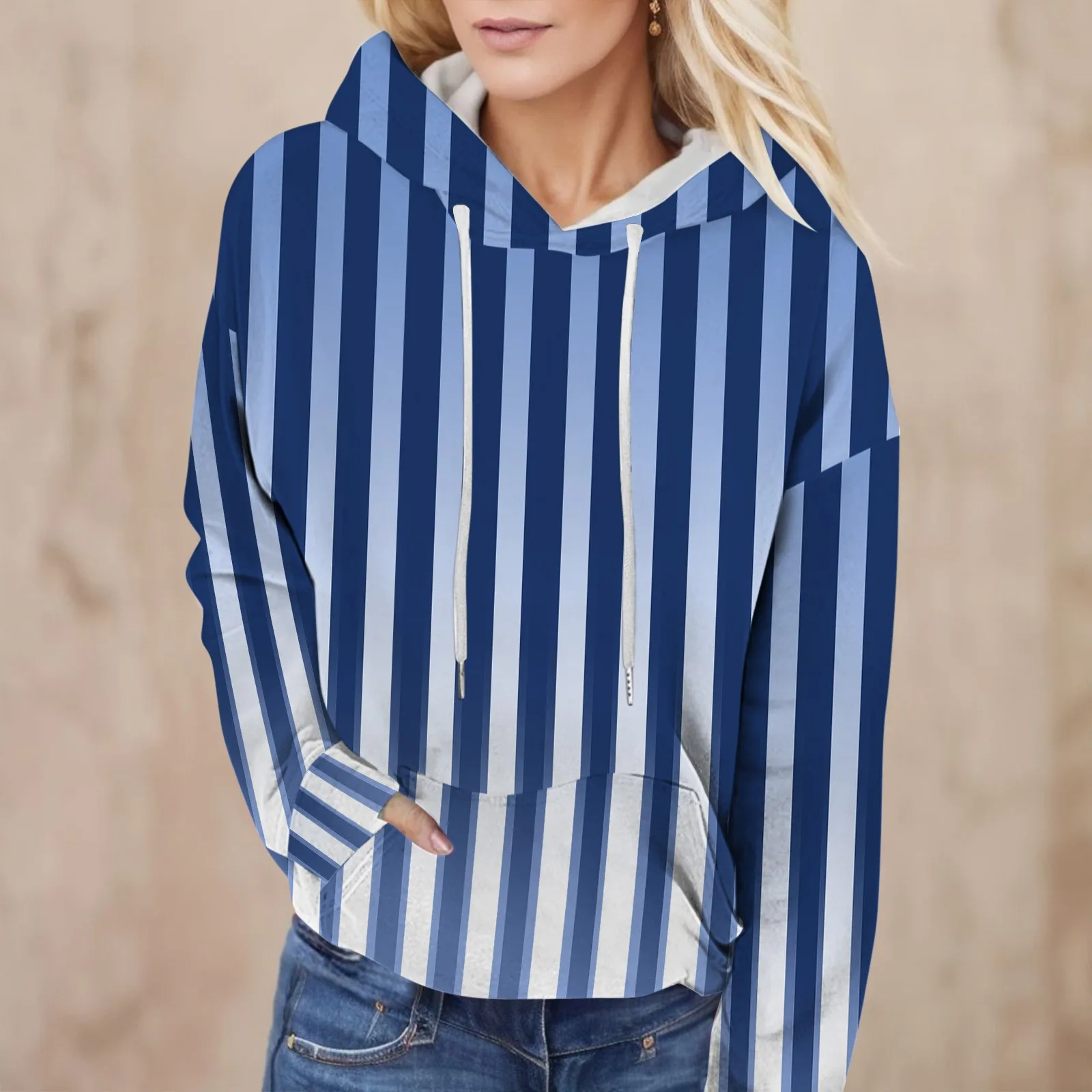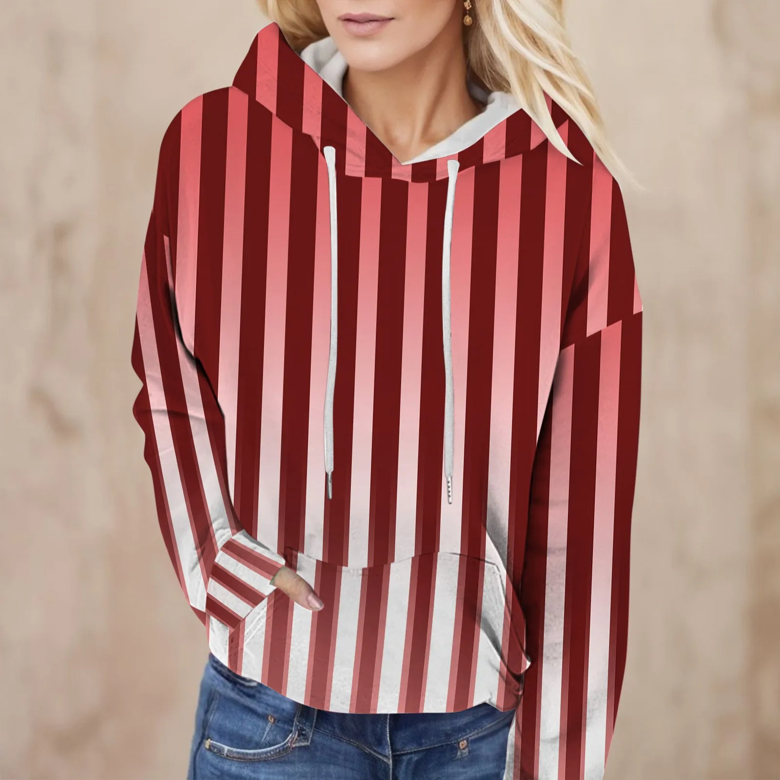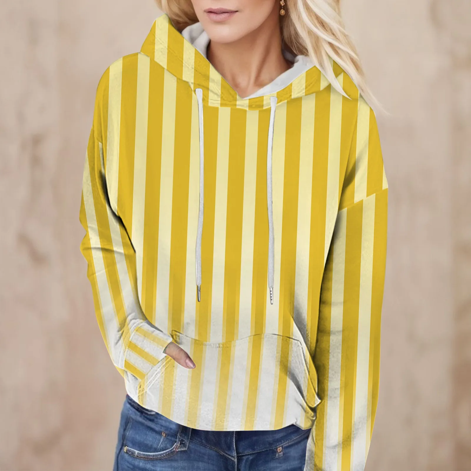 Women's hoodies Lace Up Striped Top Printed Long Sleeved Hoodie Orange Colour With Pocket Loose Hoodie Clothe with Pocket