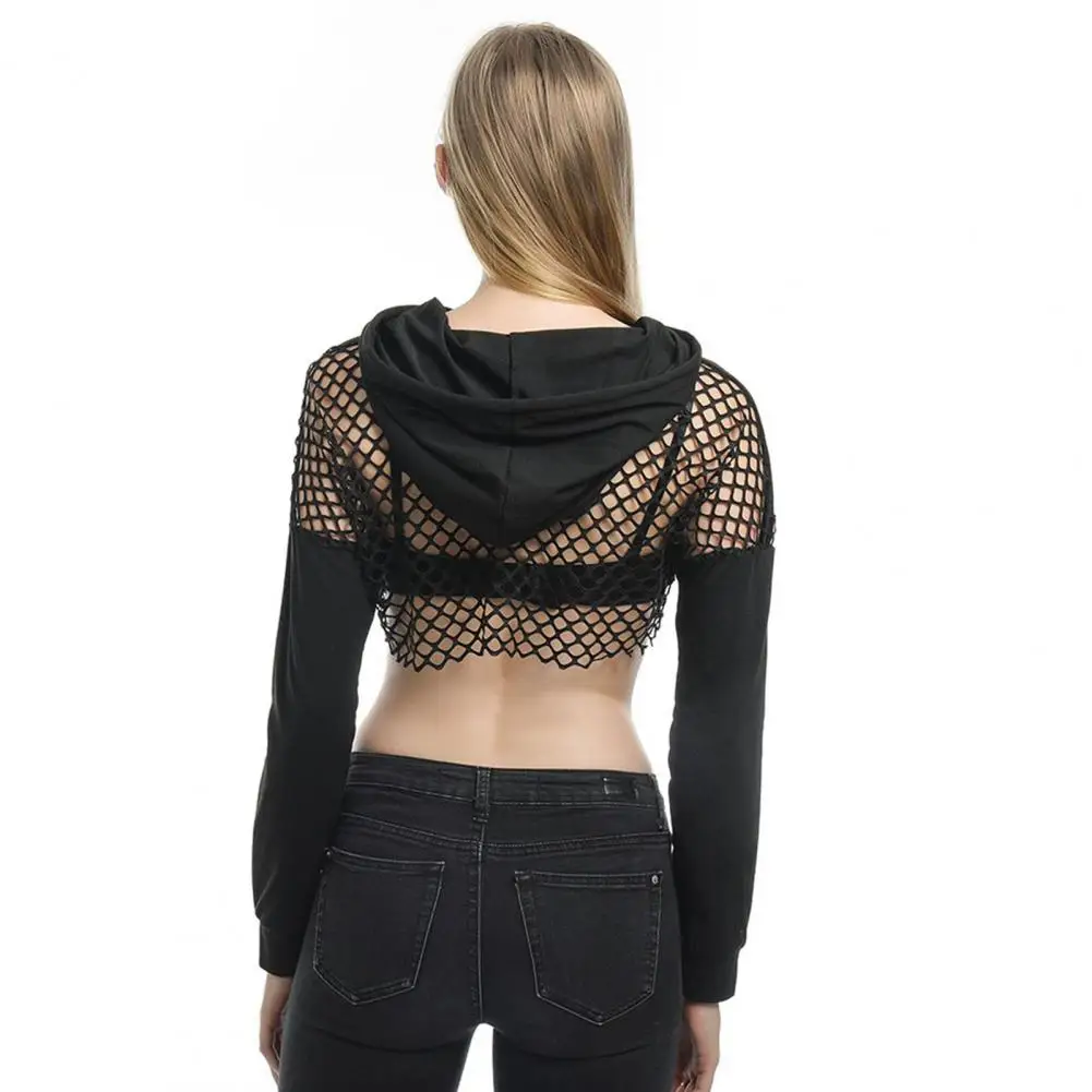Name | Women Solid Color Hooded Sweatshirt Stylish Women's Hollow Out Mesh Patchwork Hoodie with Drawstring Waist Long for Streetwear |