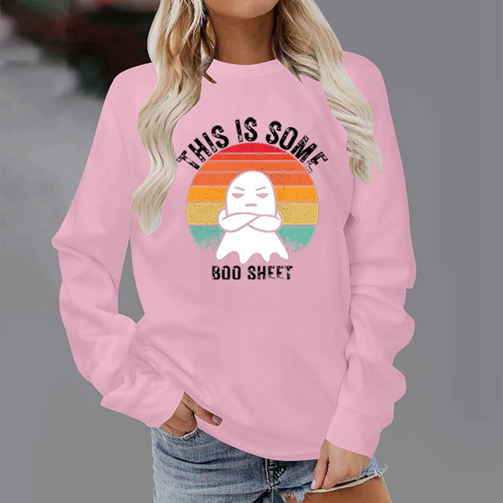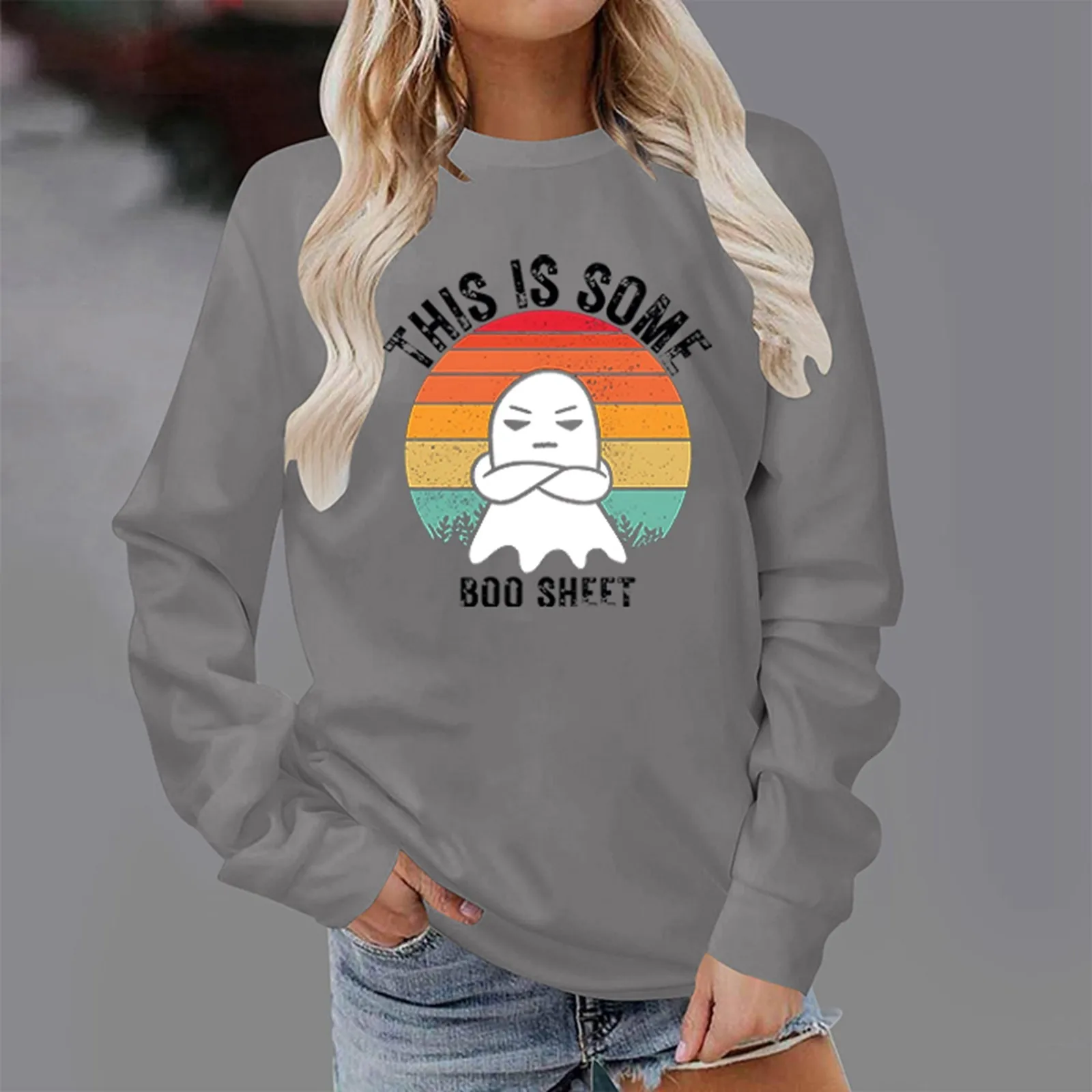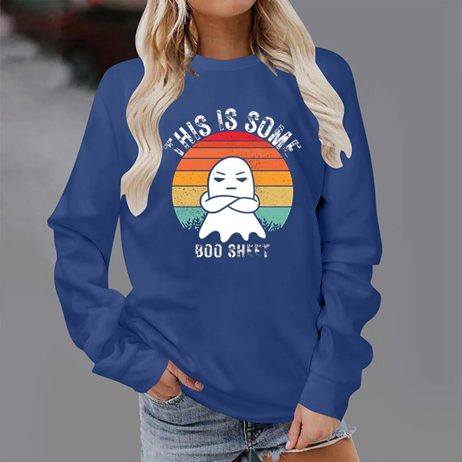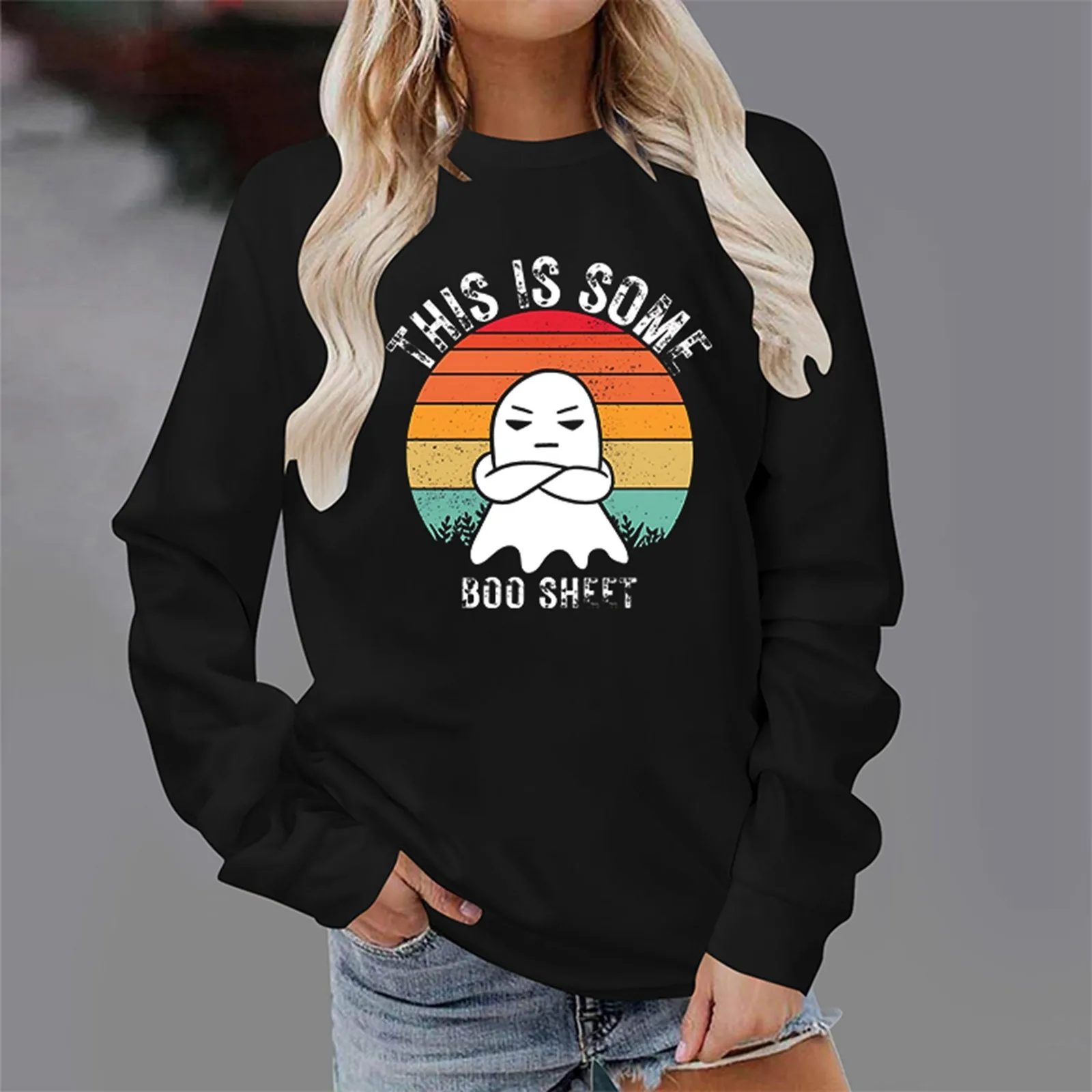 Name | Halloween Fashion Specter Print Sweatshirt Women Long Sleeved Crew Collar Casual Hoodie Autumn Comfortable Loose Pullover |