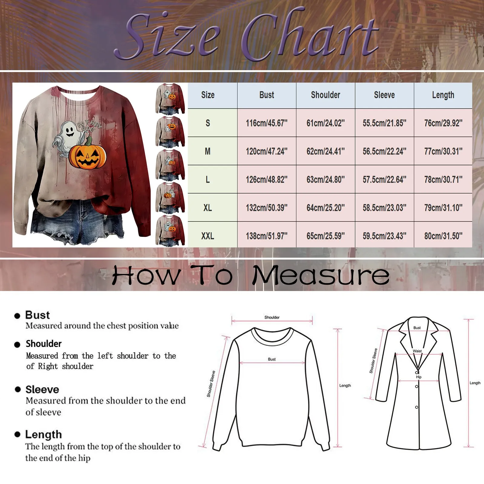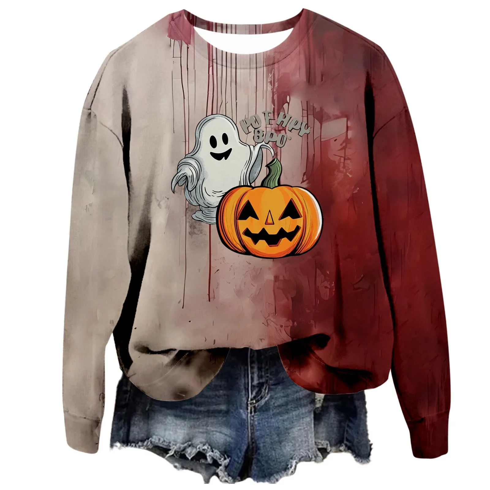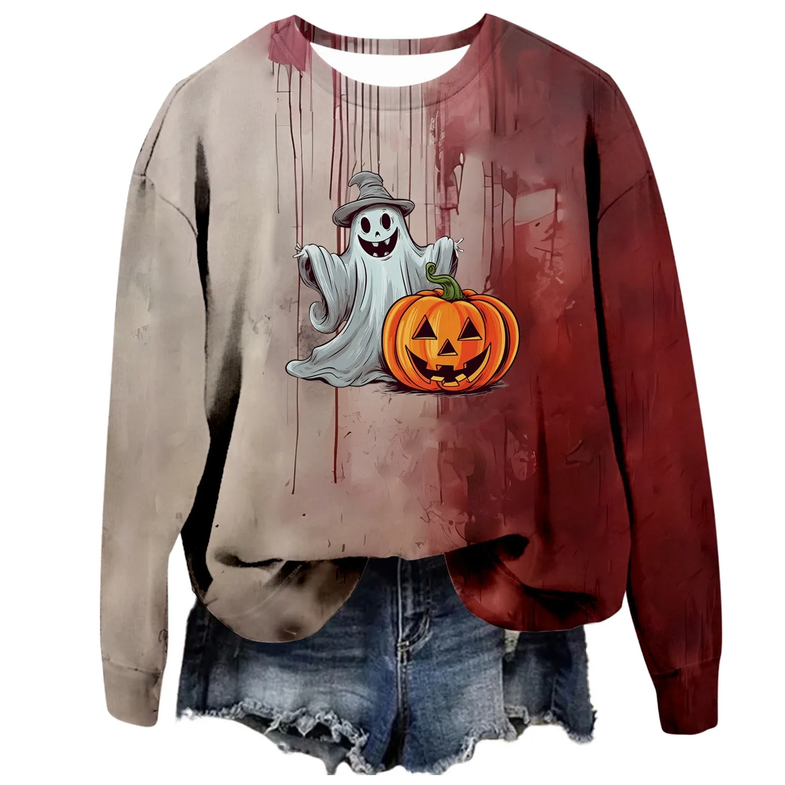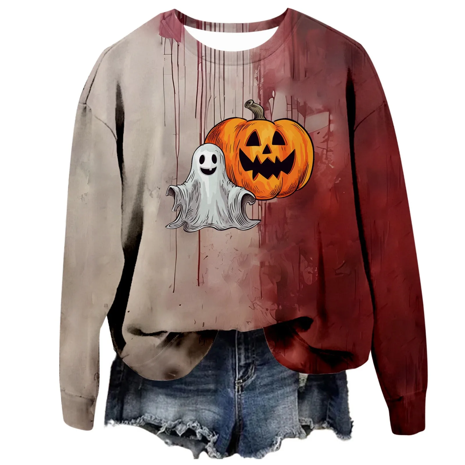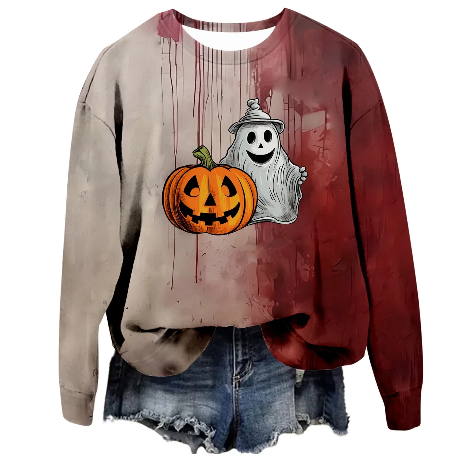 Name | Graphic Horror Round Neck Pullover Pumpkin Blood Printed Halloween Hoodie Women Loose Fit Casual Autumn/Winter Sweatshirt |