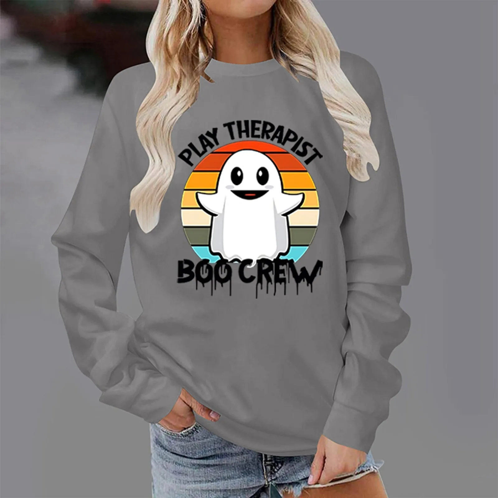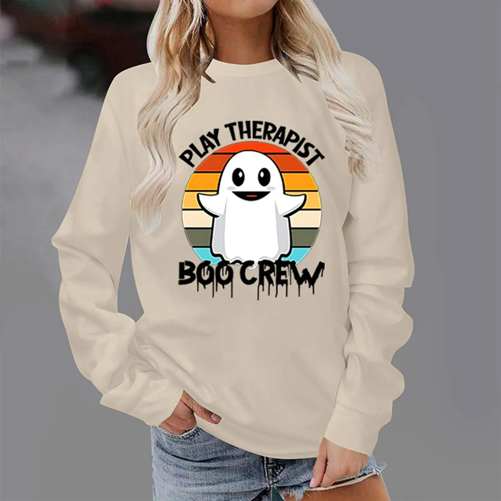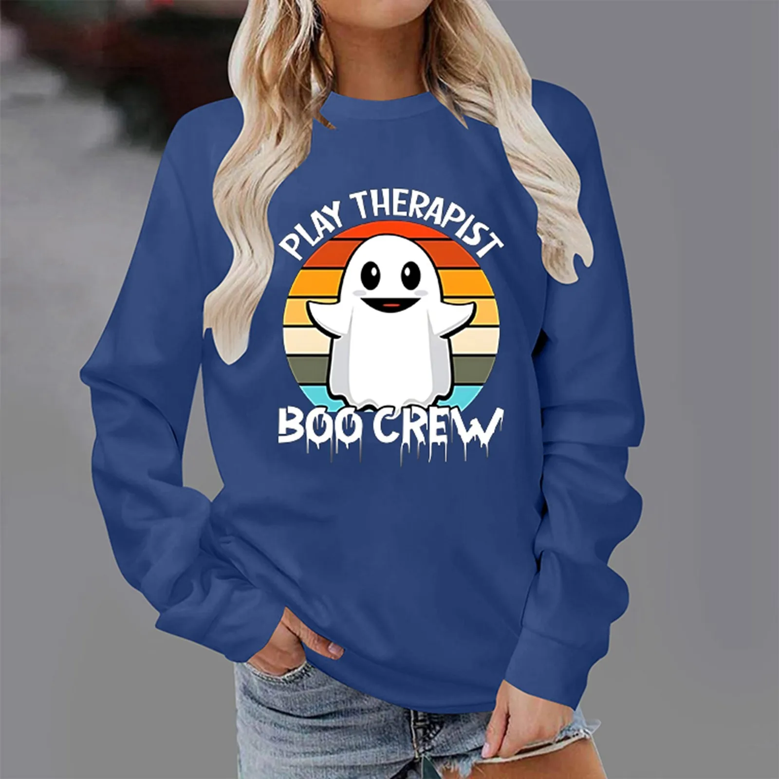 Name | Halloween Fashion Specter Print Pullover Women Long Sleeve Crew Neck Loose Fit Hoodies Casual Autumn Festival Sweatershirt |
