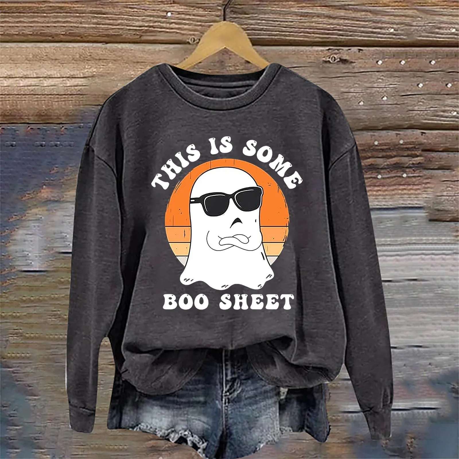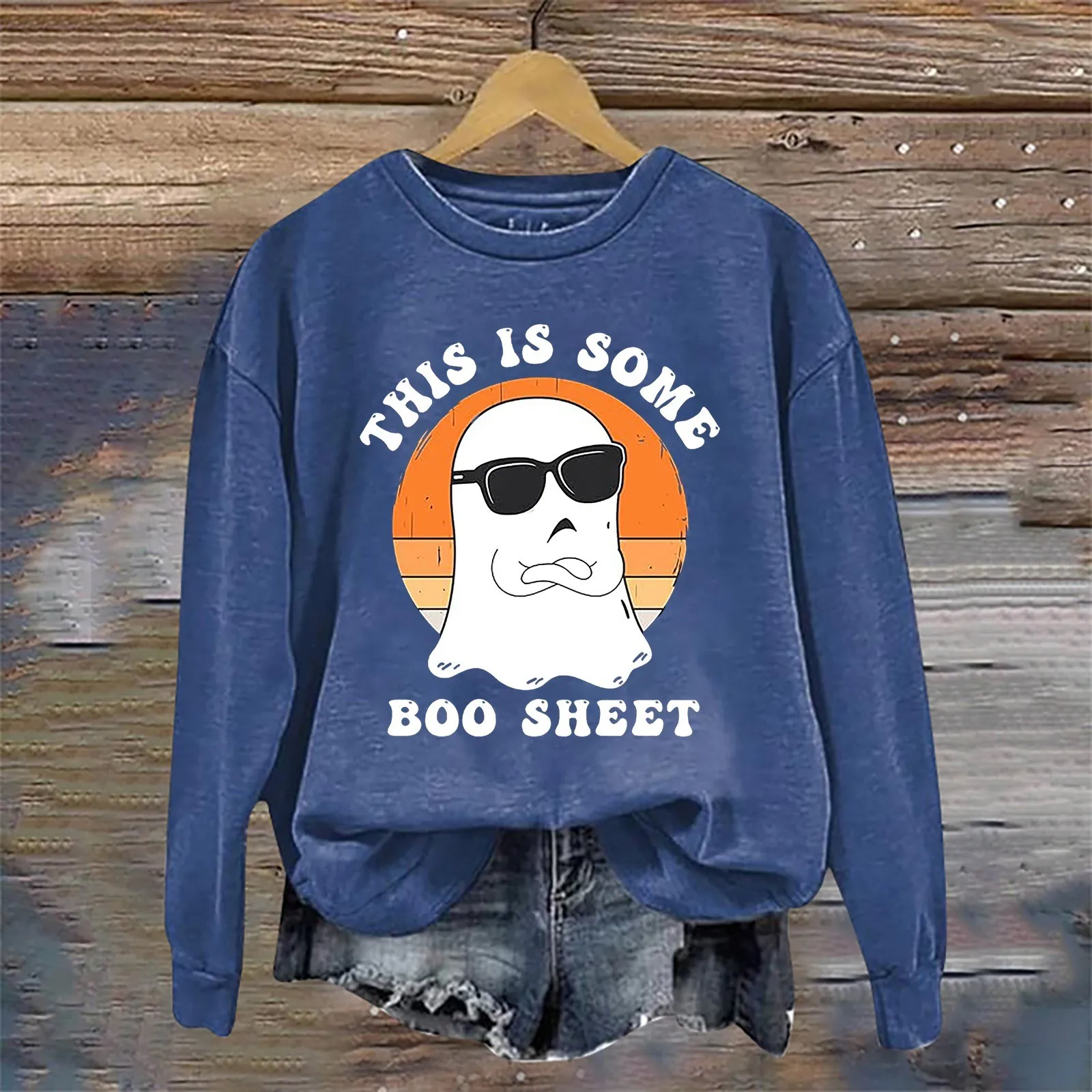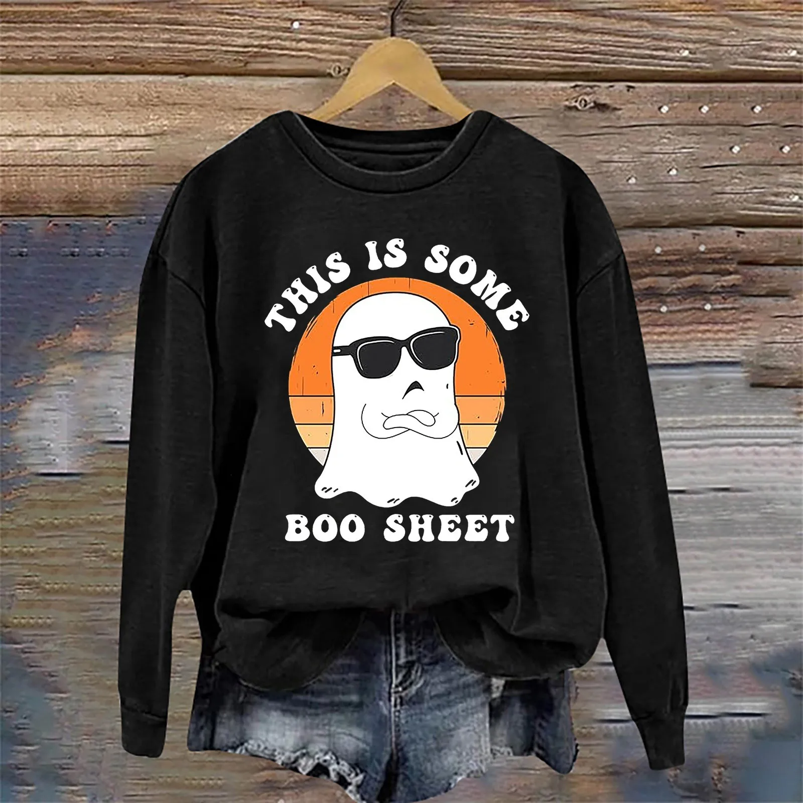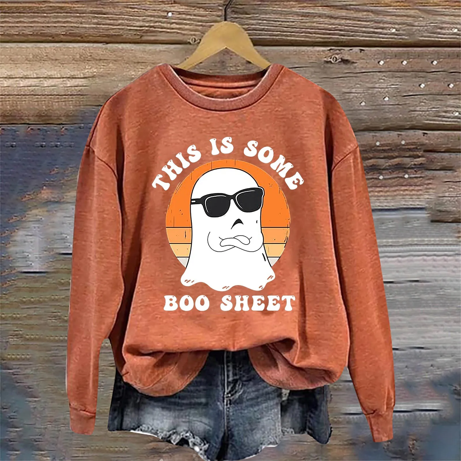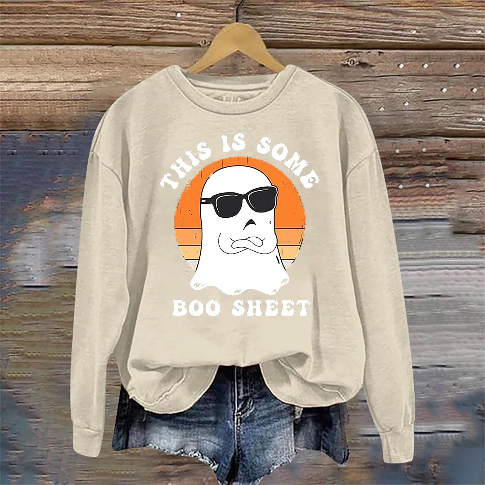 Name | Funny Ghost Printed Halloween Hoodie Women Long Sleeve Loose Fit Fashion Pullover Casual Round Neck Hoodless Sweatshirts |