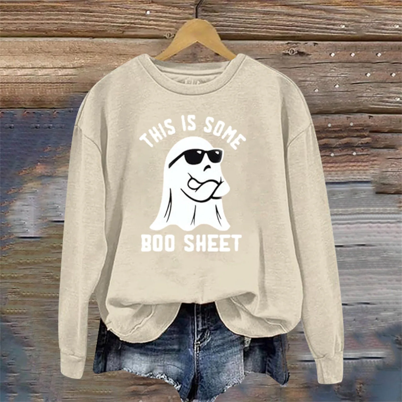 Name | Cute Ghost Halloween Funny Letter Printed Hoodie Women Round Neck Loose Fit Long Sleeve Pullover Casual Autumn Sweatshirt |
