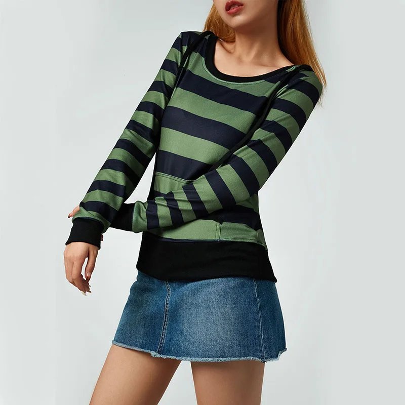 Name | Women's Hoodies Patchwork Pullovers Stripe Pattern Long Sleeve Hooded Sweatshirts With Kangaroo Pocket Spring Autumn Y2k Clothes |