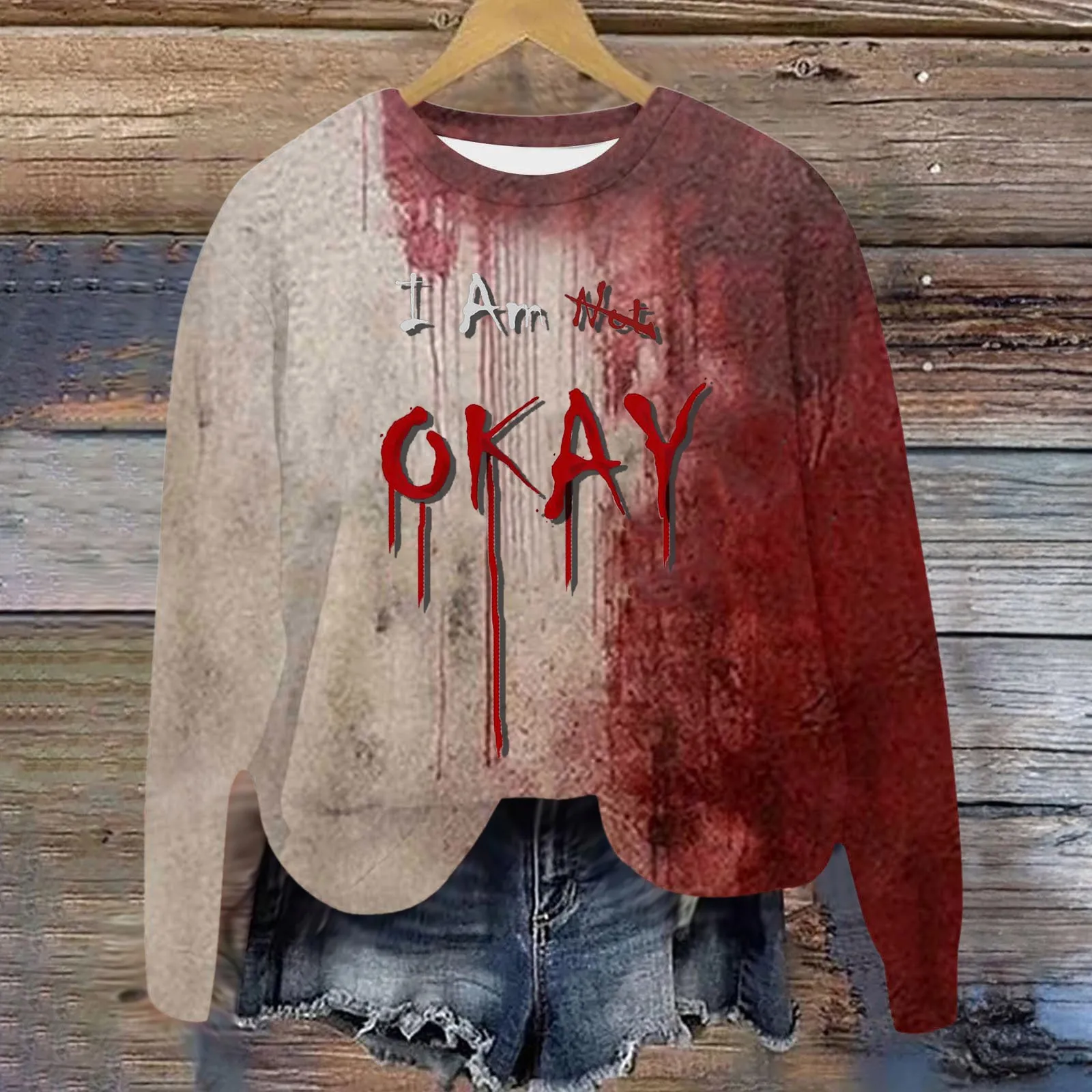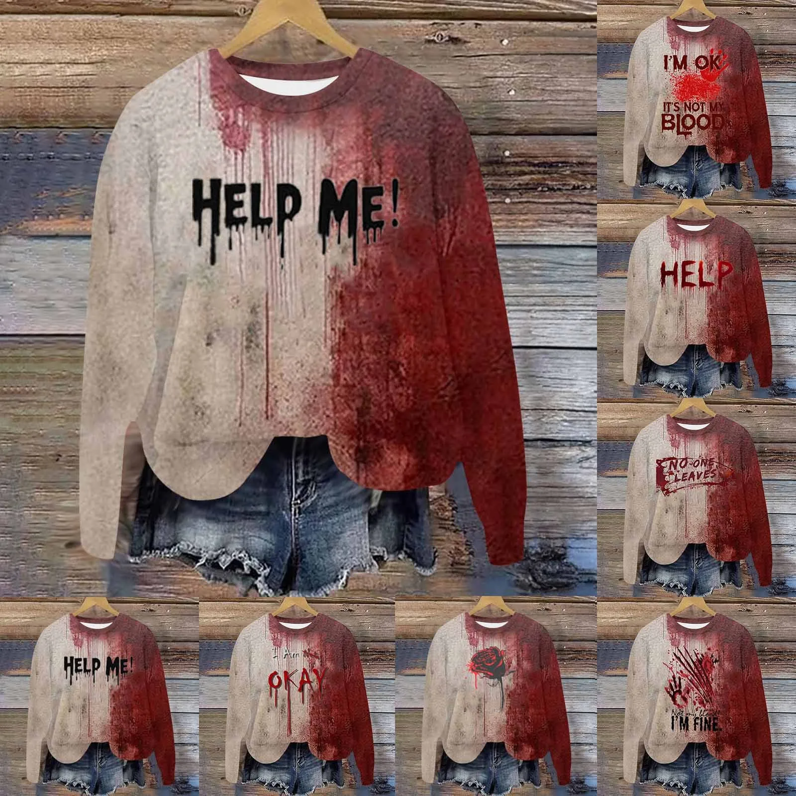 Help Printed Sweatshirt Women 2024 Autumn Winter Oversize Sweatshirts Crewneck Long Sleeve Pullover Top Athletic Female Clothes