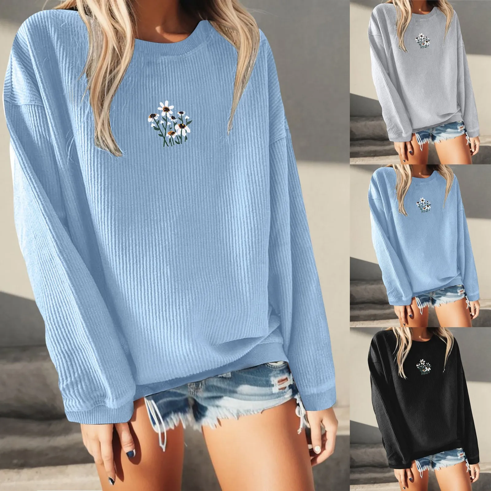 Women Fashion Print Print Sweatshirt Loose Round Neck Long Sleeve Undershirts Women Long Sleeve Long Sleeve Workout Tee Women