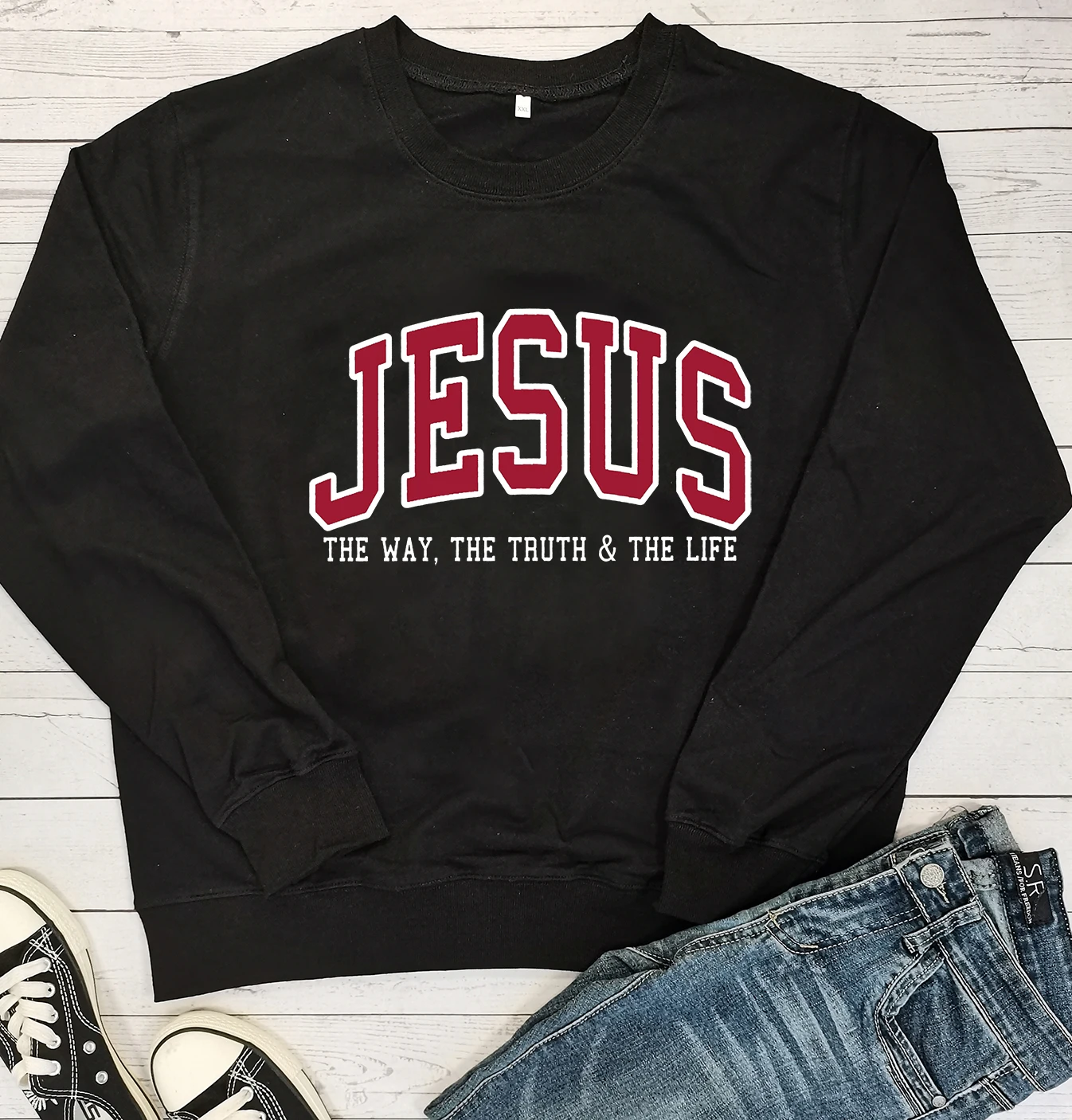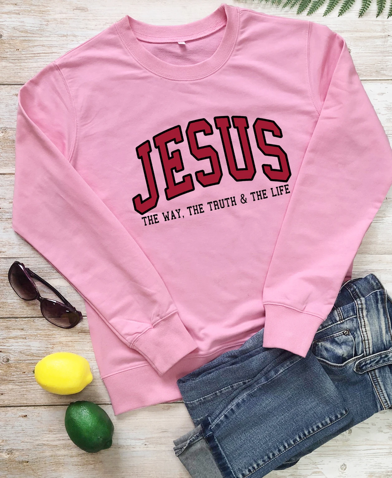 Name | Colored JESUS THE WAY THE TRUTH THE LIFE Sweatshirt Christian Sweats Inspirational Pullovers Women Casual Bible Verse Tops |