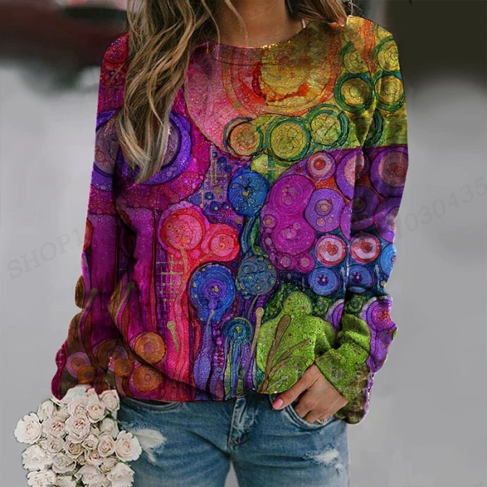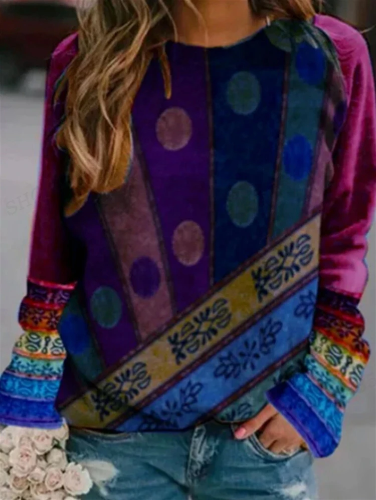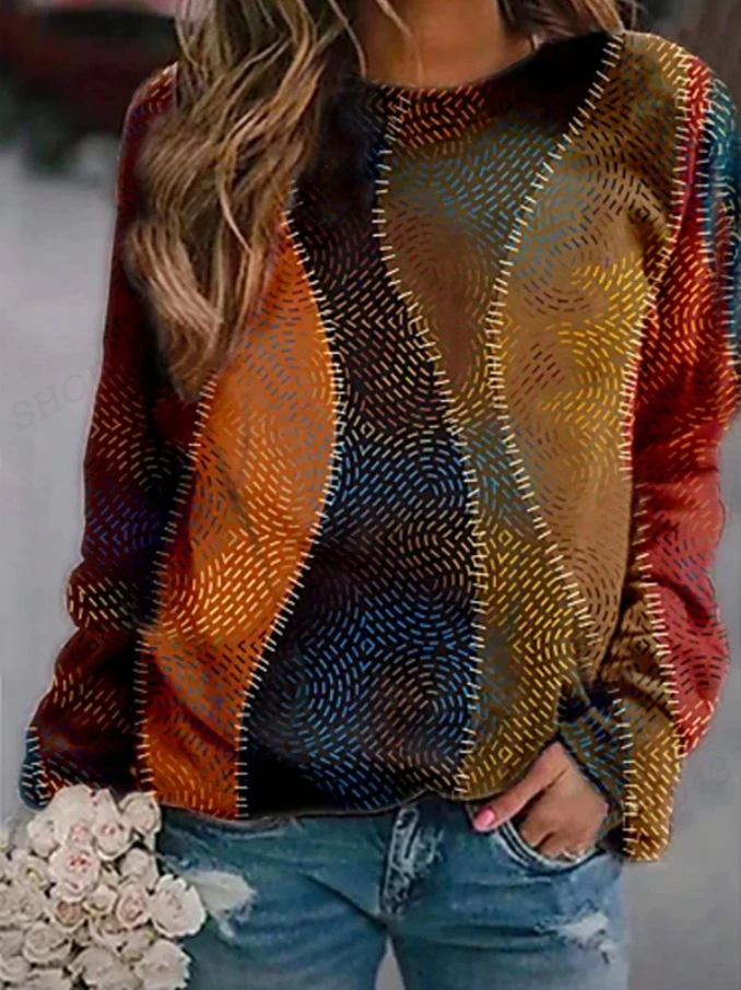 Name | Vintage Hoodie Women Fashion Hoodies Ethnic 3d Patchwork Print Round Neck Long Sleeve Hoodies Harajuku Abstract Painting Sweats |