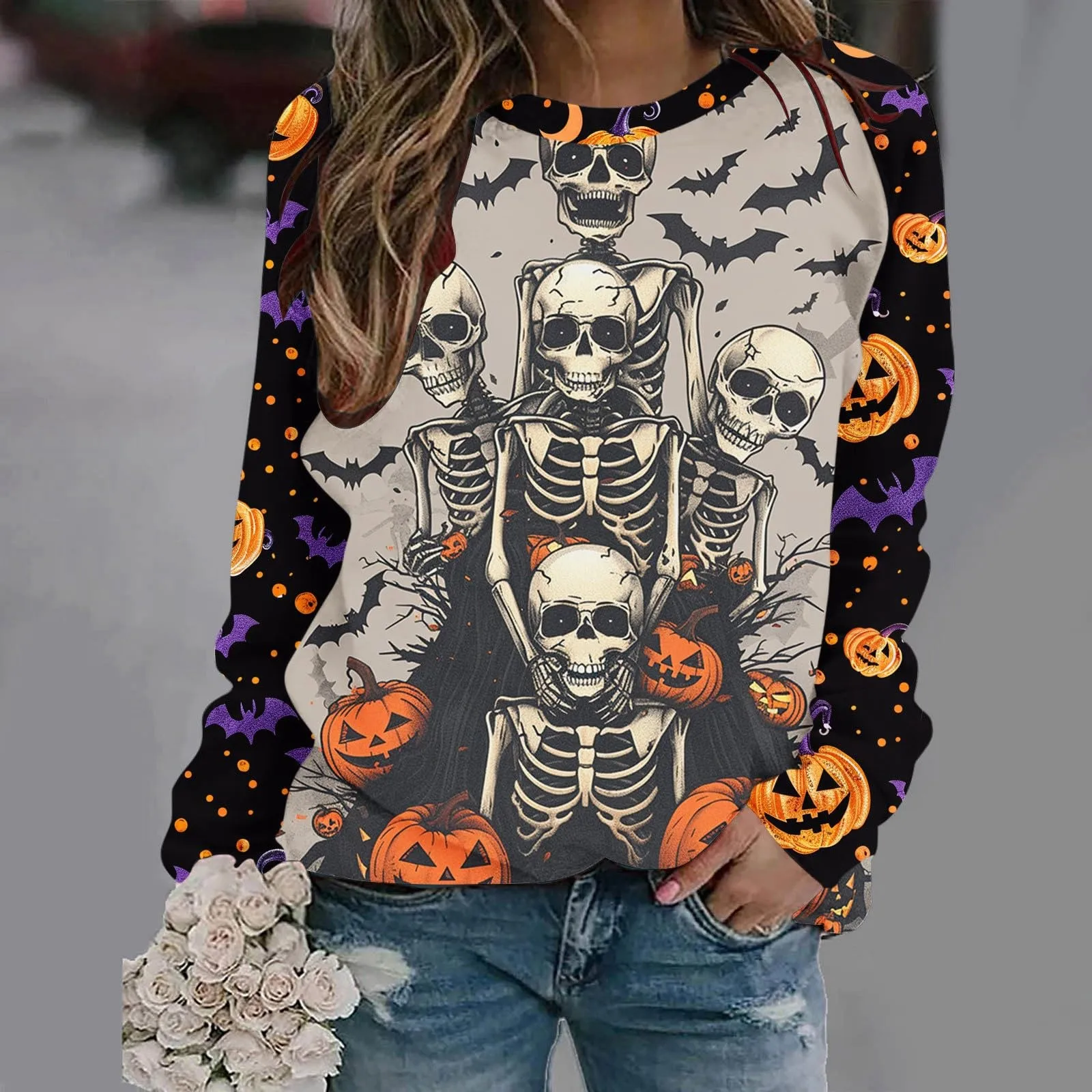 Name | Halloween Print Pumpkin Casual Hoodless Sweatshirt Loose Fit Casual Round Neck Hoodies Women Long Sleeve Autumn Pullover |