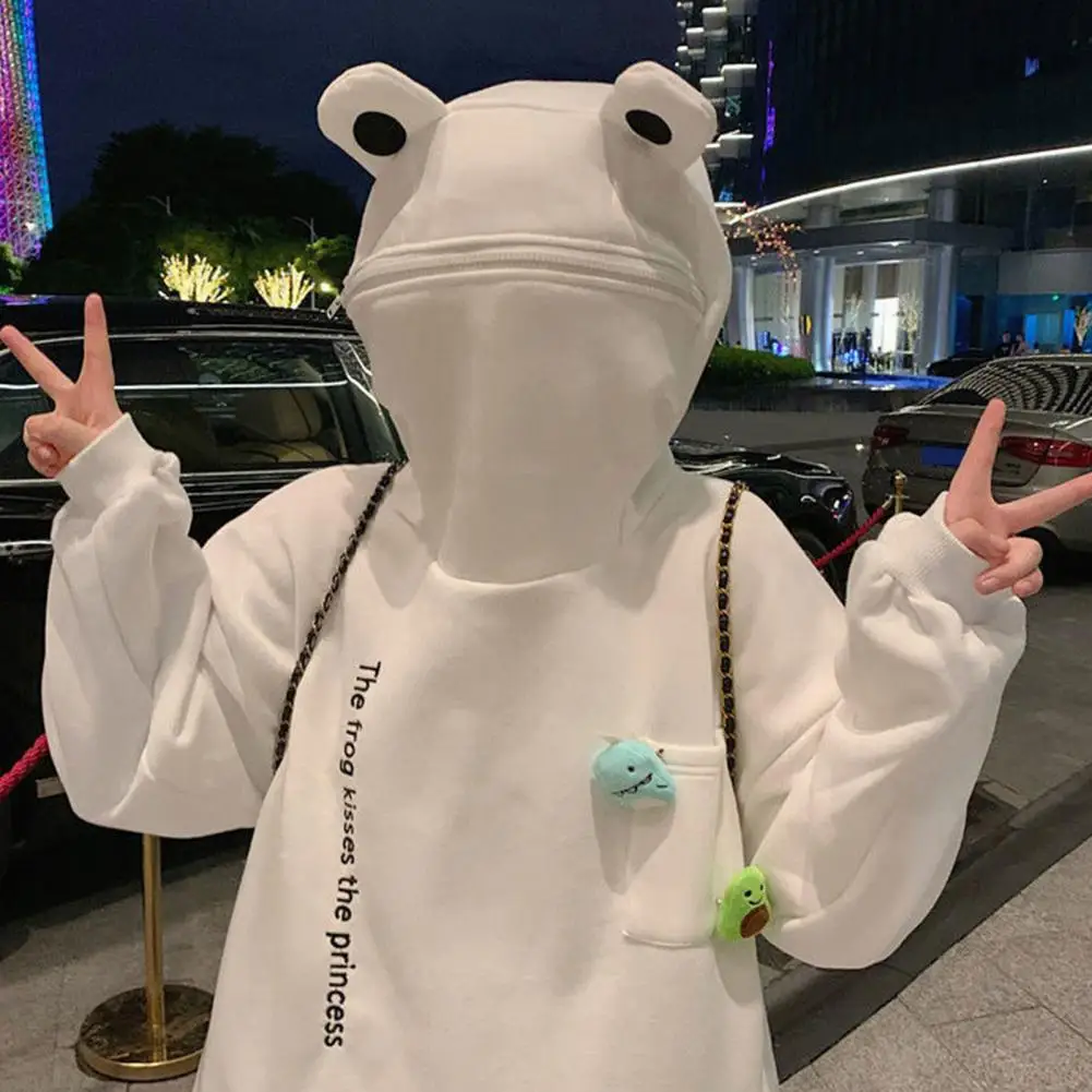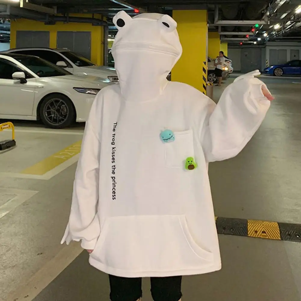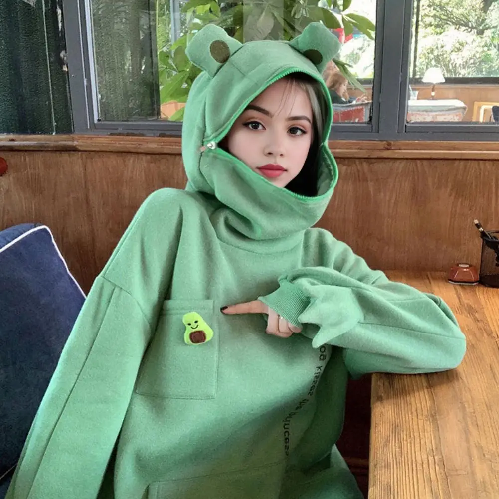 Name | Women Hoodie Cozy Plush Frog Hoodie with Embroidered Letters Big Pocket for Couples Warm Unisex Winter Zip-up Jacket for Outdoor |