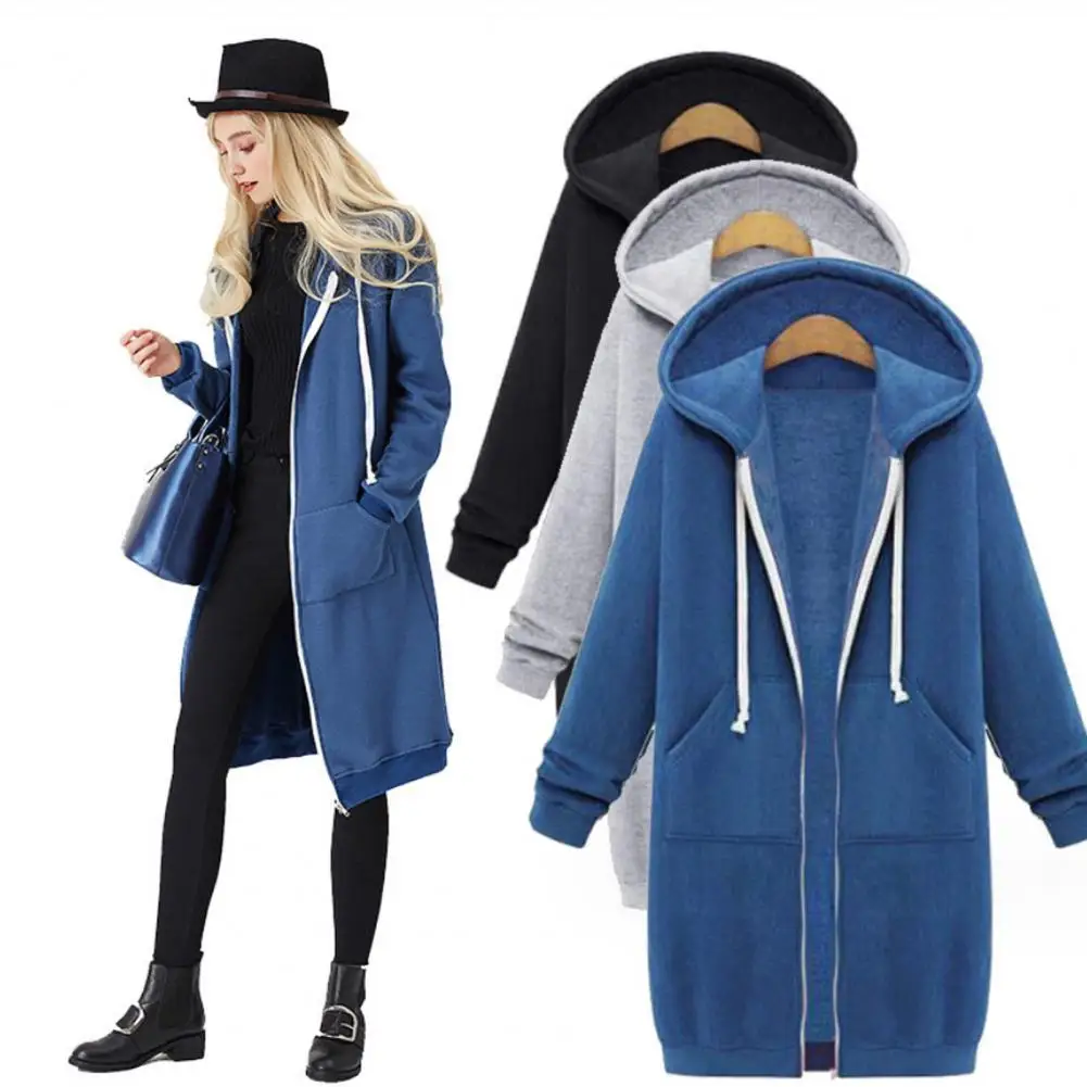 Name | Women's Long Hooded Sweatshirt With Pockets Zipper Placket Solid Color Hoodie Stylish Fall Winter Fashion Coat Zip Up Outerwears |