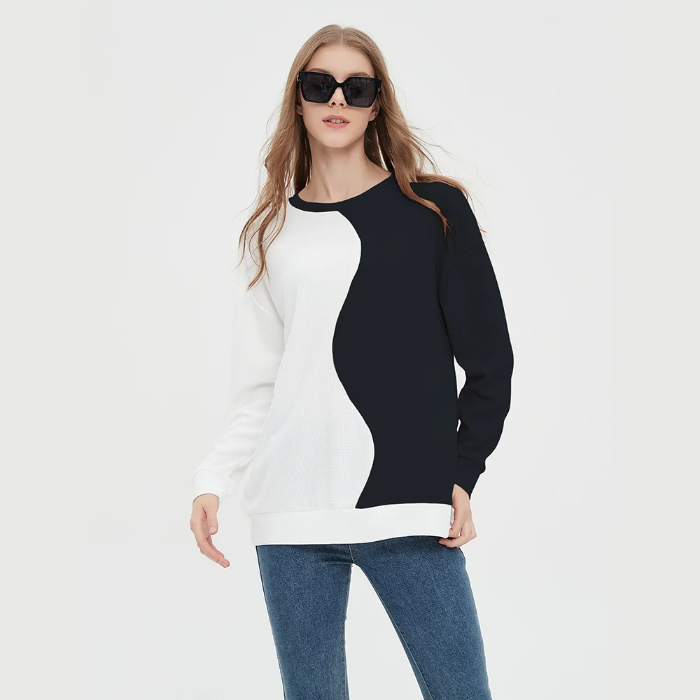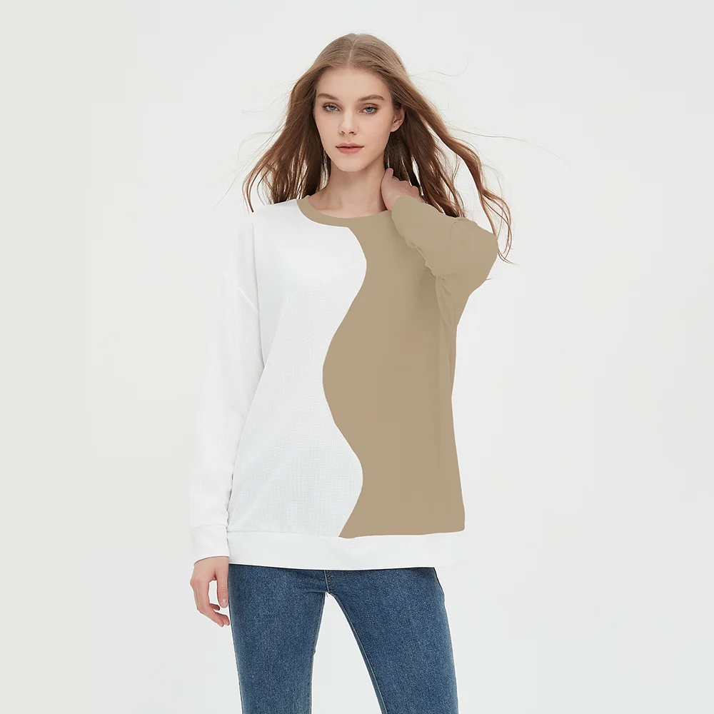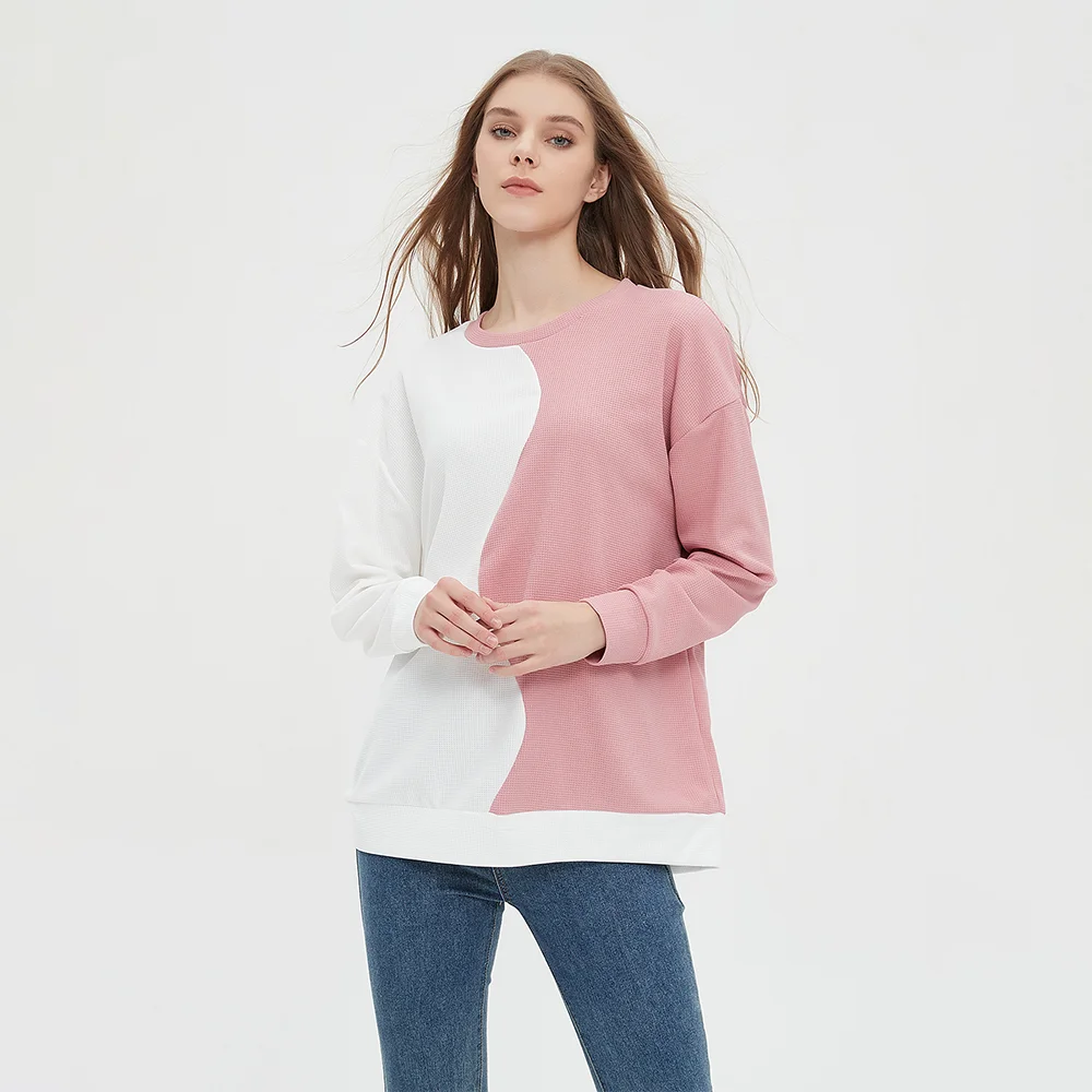 spring and autumn Women's Color T-shirt Autumn/Winter Round Neck Splicing casual Casual Sweatshirts Women Tops Pullover