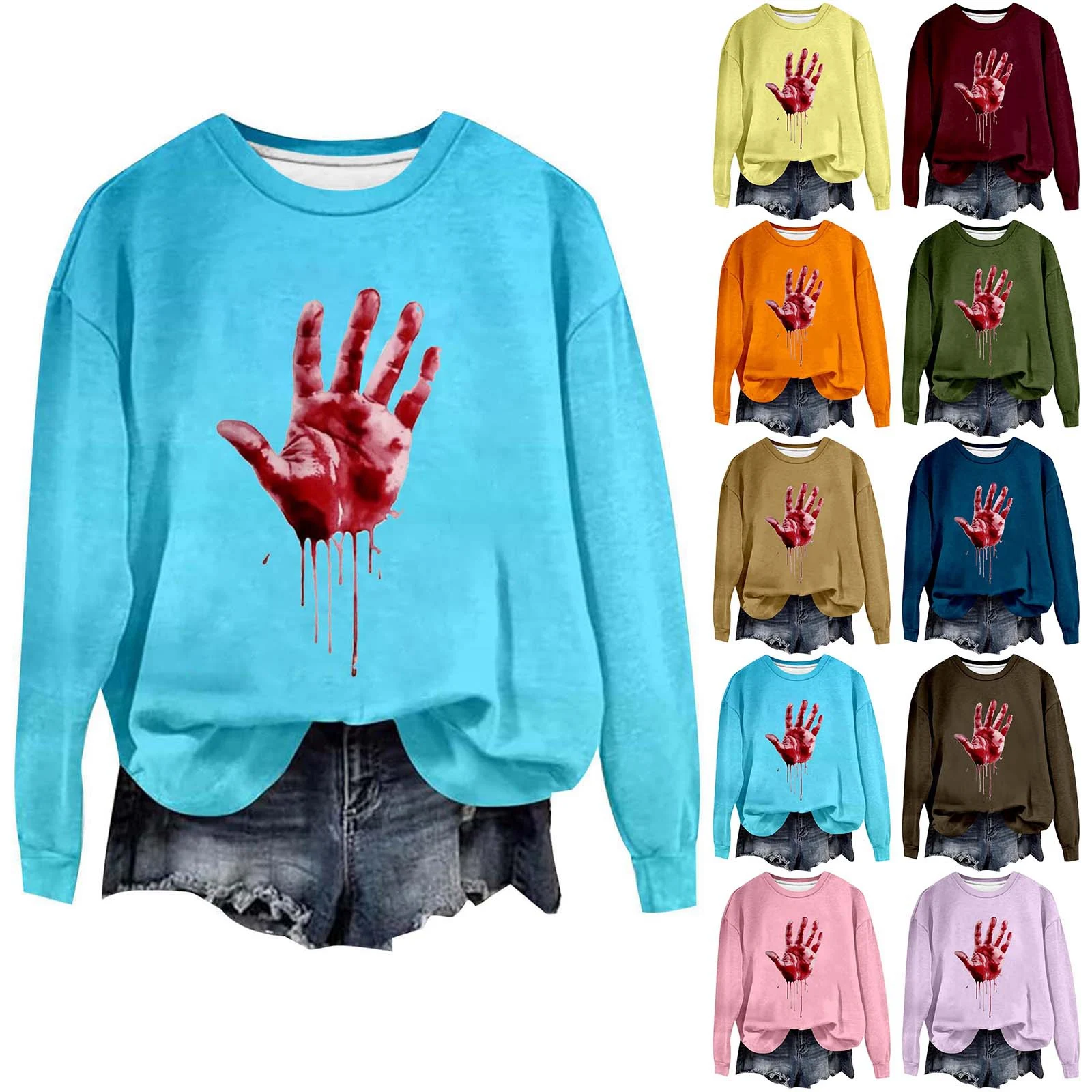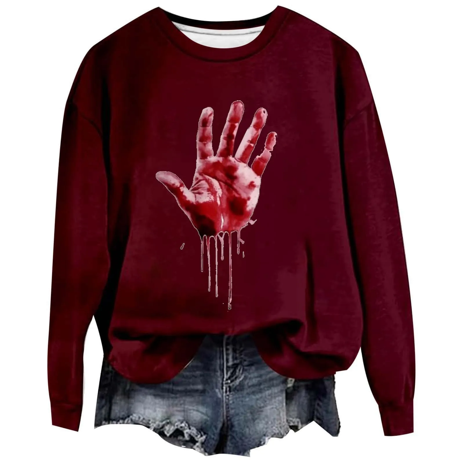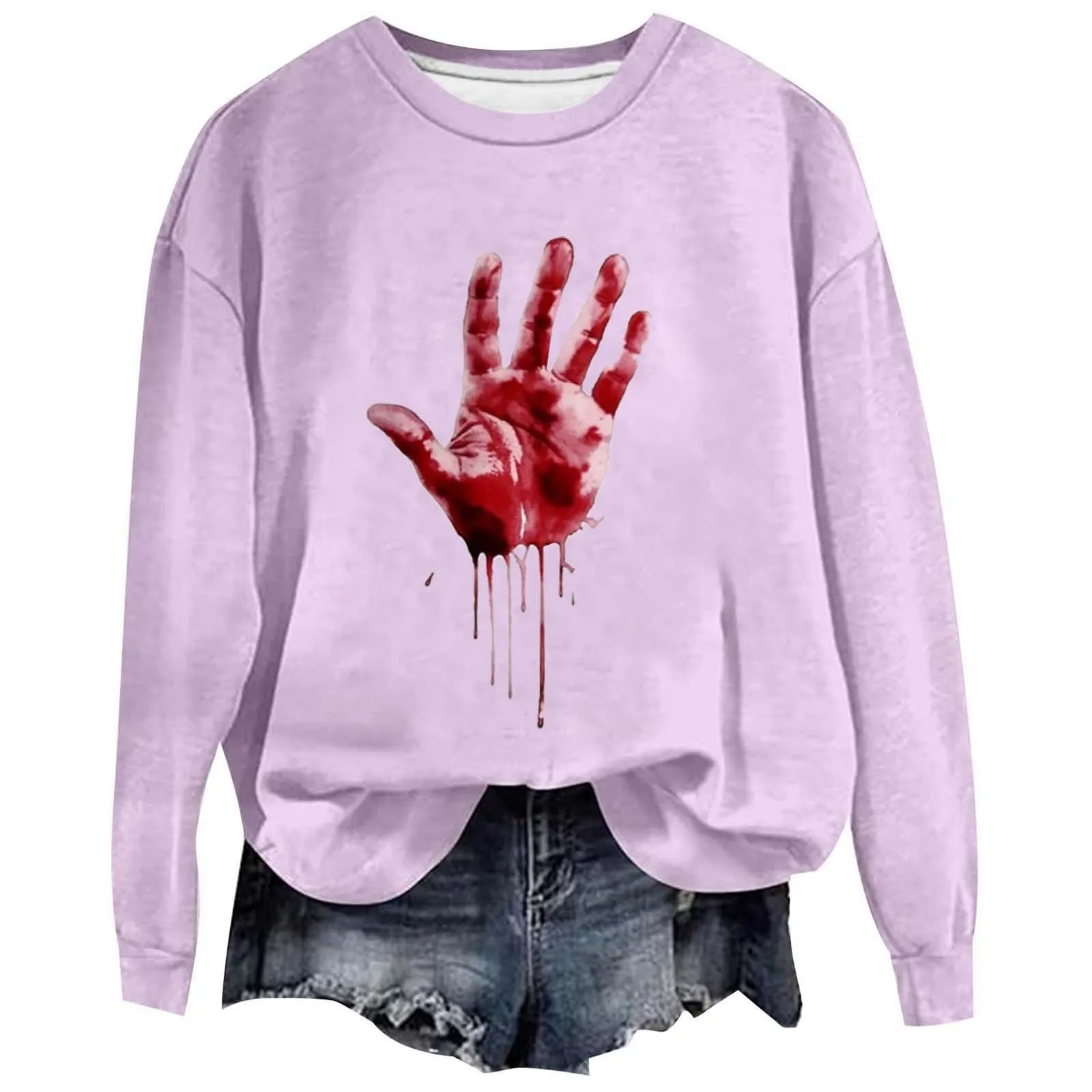 Halloween Women's Sportswear Fun Letter Shirt Long Sleeved Halloween Pullover Sweatshirt Top Fleece Hoodie Pack