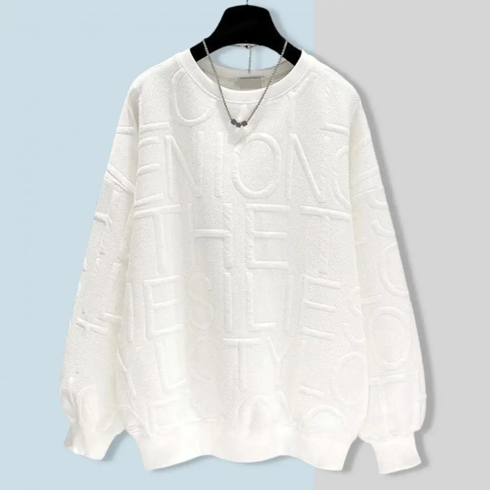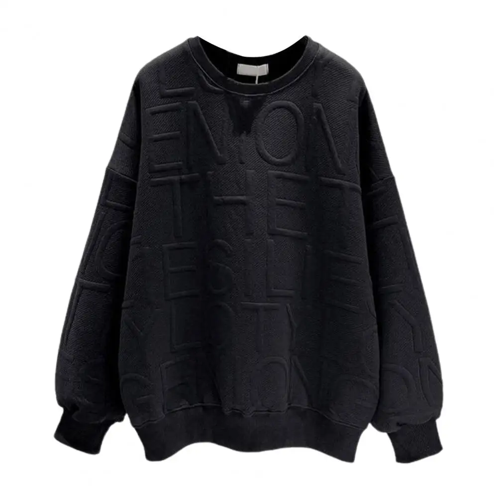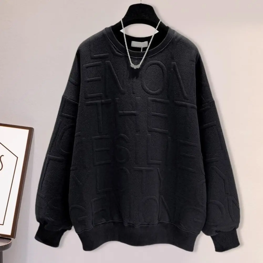 Name | Winter Women Sweatshirt Solid Color Crew Neck Lady Sweatshirt Letter Texture Elastic Cuff Loose Pullover Top Female Clothes |