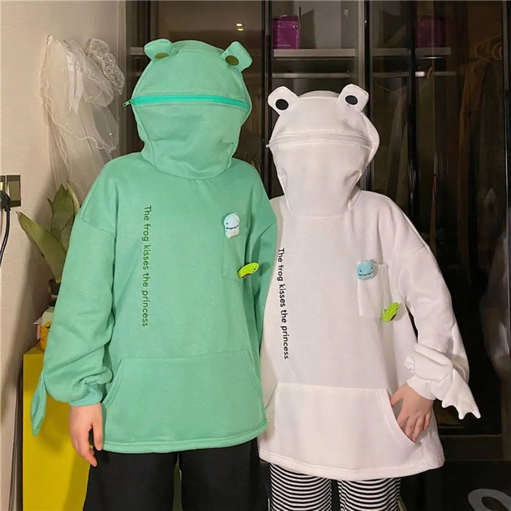 Name | Winter Women Top Cozy Plush Frog Hoodie with Embroidered Letters Big Pocket for Couples Warm Winter Zip-up Jacket for Outdoor |