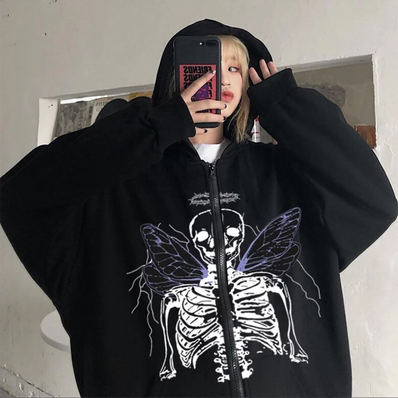 Oversized Y2k Retro Casual Sweater Korean Street Style Harajuku Zip Hoodie Autumn Punk Gothic Jacket Jogging Sweater 2022 New