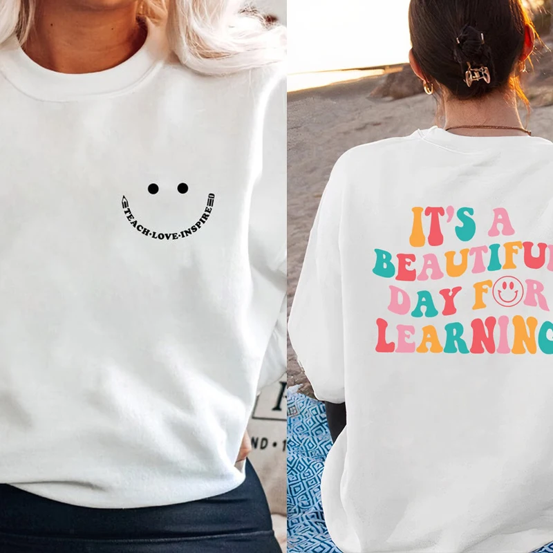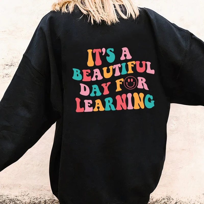 Name | It's A Beautiful Day Crewneck Sweatshirts Women Preppy Teacher Hooded Sweatshirt Back To School Oversize Woman Clothes Coat |