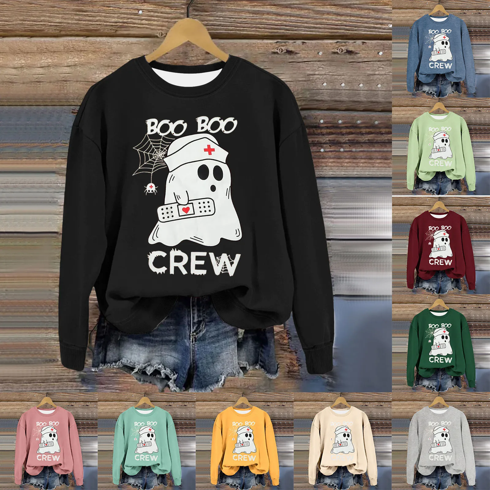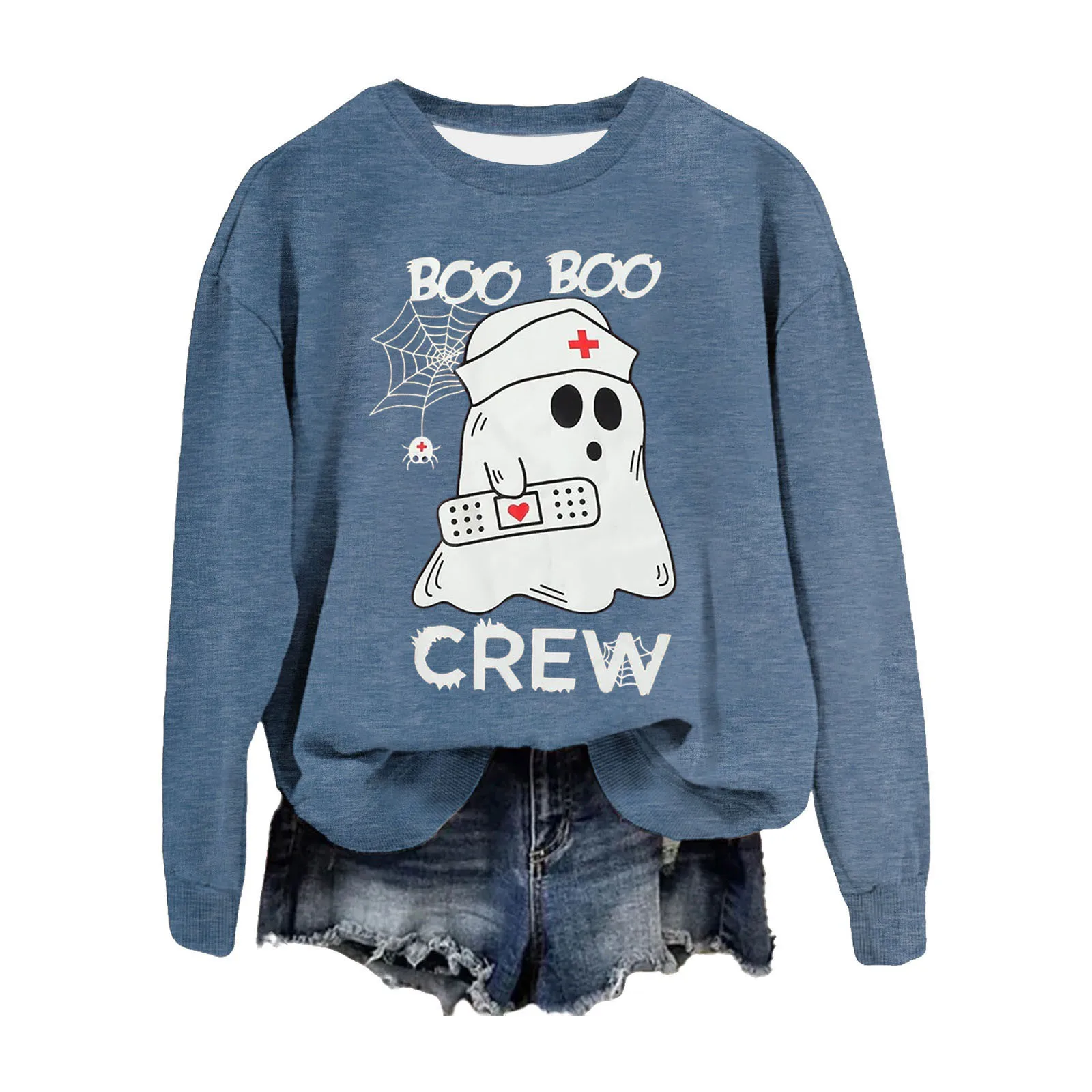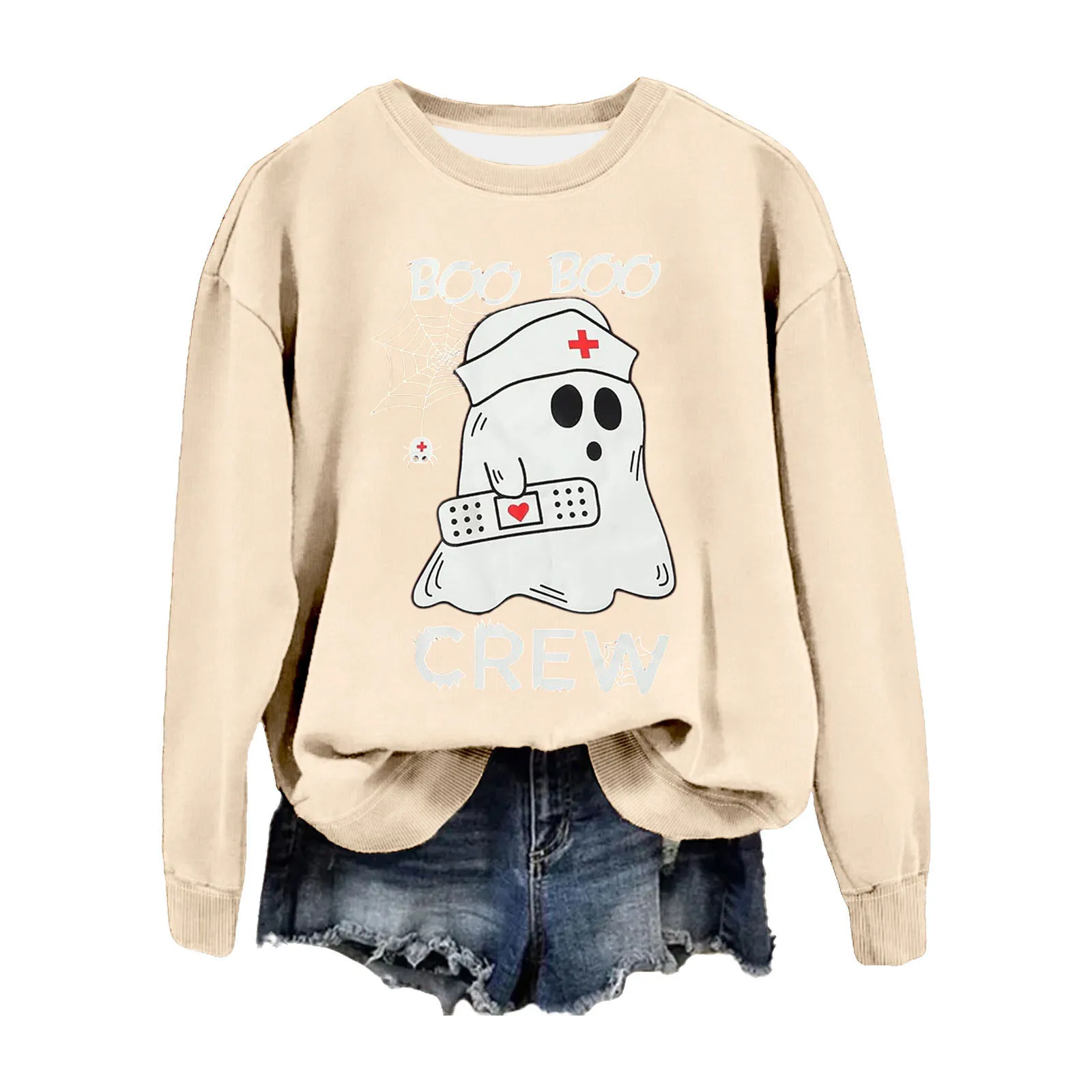 Women's Halloween Print Thin Crew Neck Hoodie Christmas Sweaters Women Cropped Long Sleeve