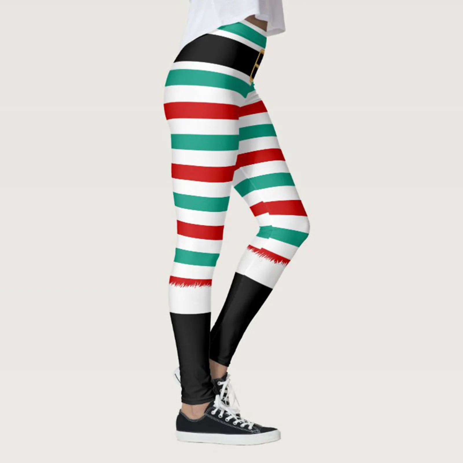 Women Gothic Punk Christmas Printed Leggings Push Up Halloween Pants Jogger Sexy Gothic Trousers Stretch New Year Imitation