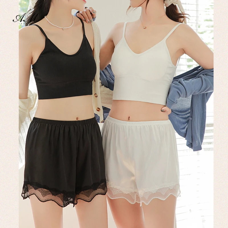 Silk Safety Short Pants for Women Lace Seamless Under Skirt Anti Chafing Ladies Underwear Satin Non Curled Hem Panties Boxers