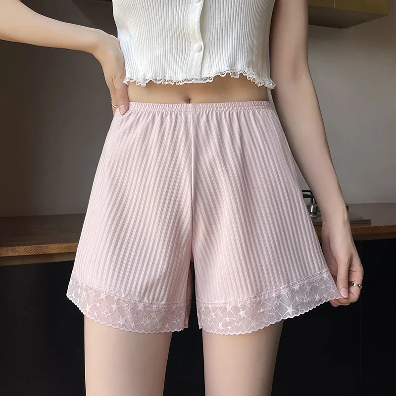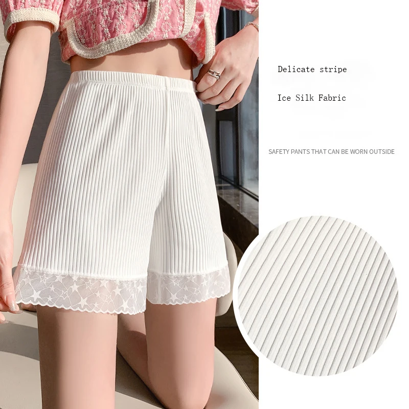 Ice Silk Safety Pants Anti Slip Lace Leggings with Thread Anti Curling for Wearing Outside in Summer