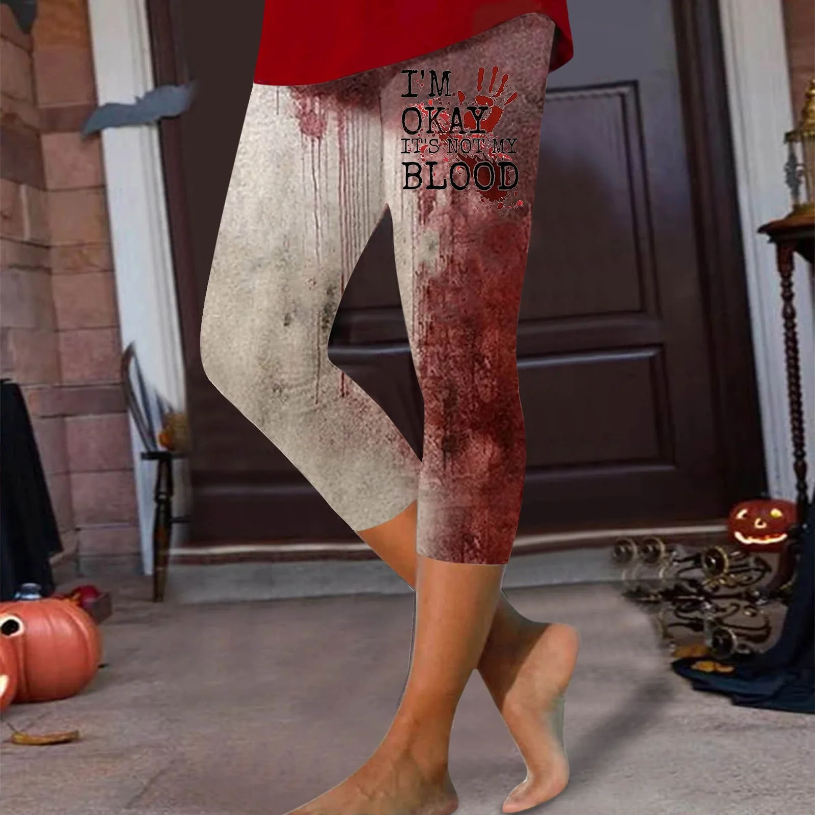 Women's Halloween Bloodstain Print Slim Fit Yoga Pants Leggings Polyester Pants plus Size Leggings for Women Cotton Soft