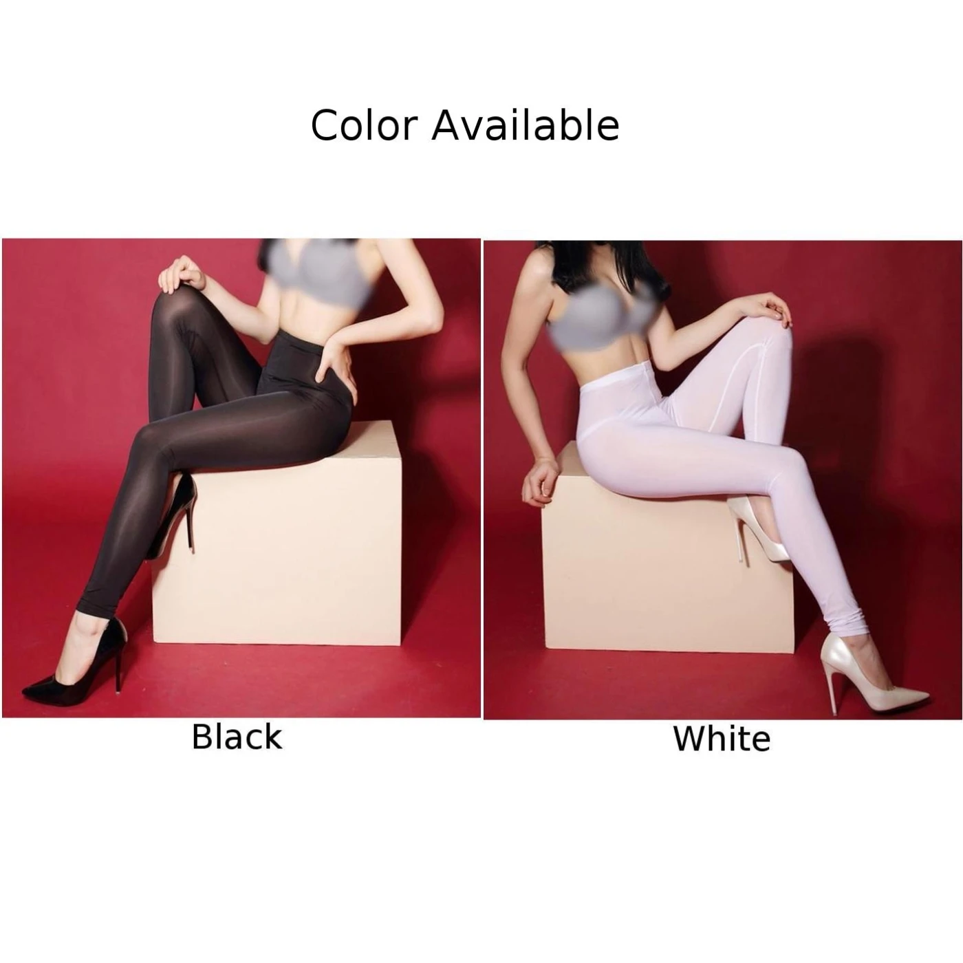 New Womens Sexy High Waisted See-Through Sheer Ultra Thin Elastic Long Pants Leggings Skinny Trousers Cropped Female Leggings